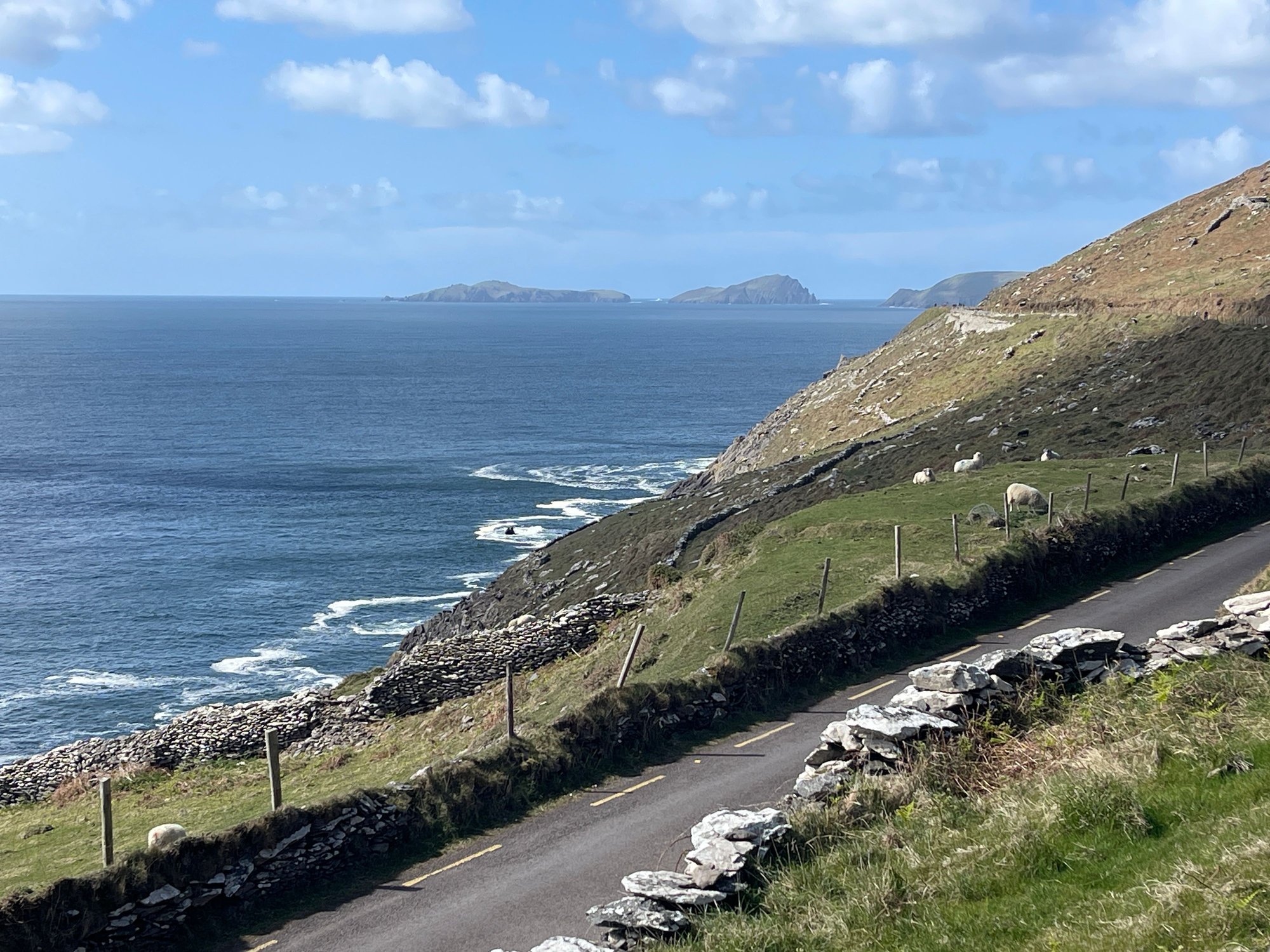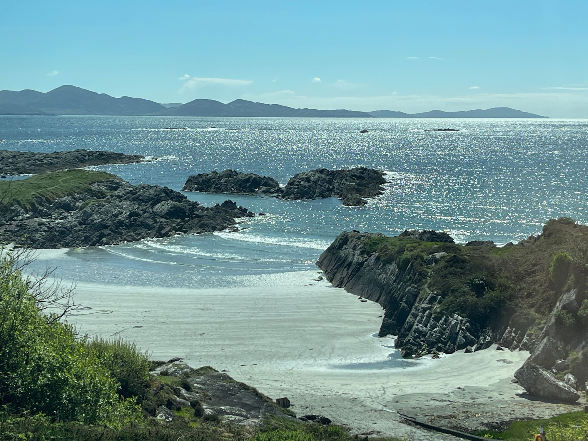 After departing the Bog Village, we continued through the village of Glenbeigh with a view of the beautiful Rossbeigh Beach and a fantastic view of the hills at the back of the Iveragh Peninsula.