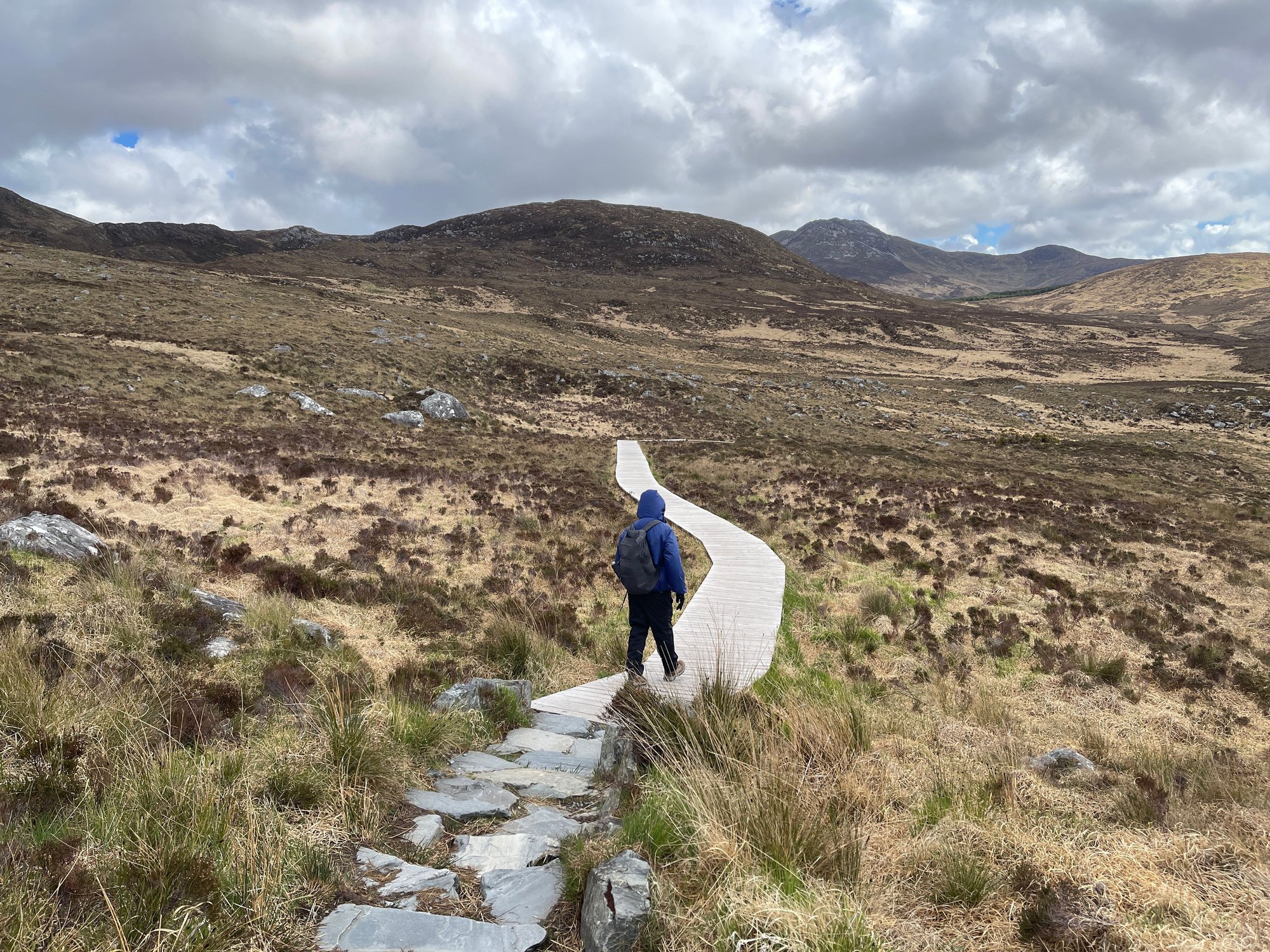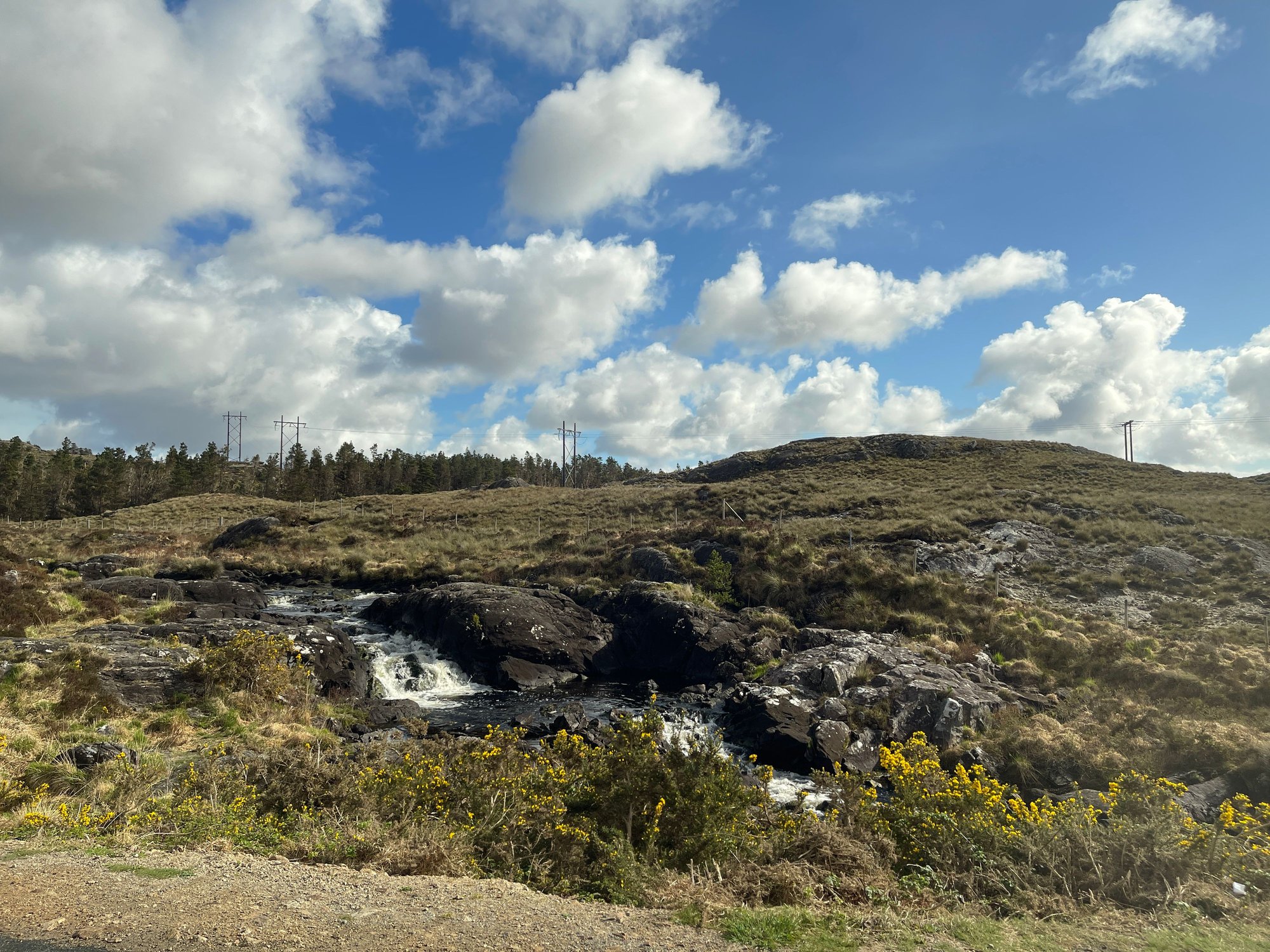 Our route to Connemara along the Wild Atlantic Way hugged the shoreline of Galway Bay. The mountains started to rise up in the distance and the terrain became dotted with lakes separated by blanket bog and forestry.