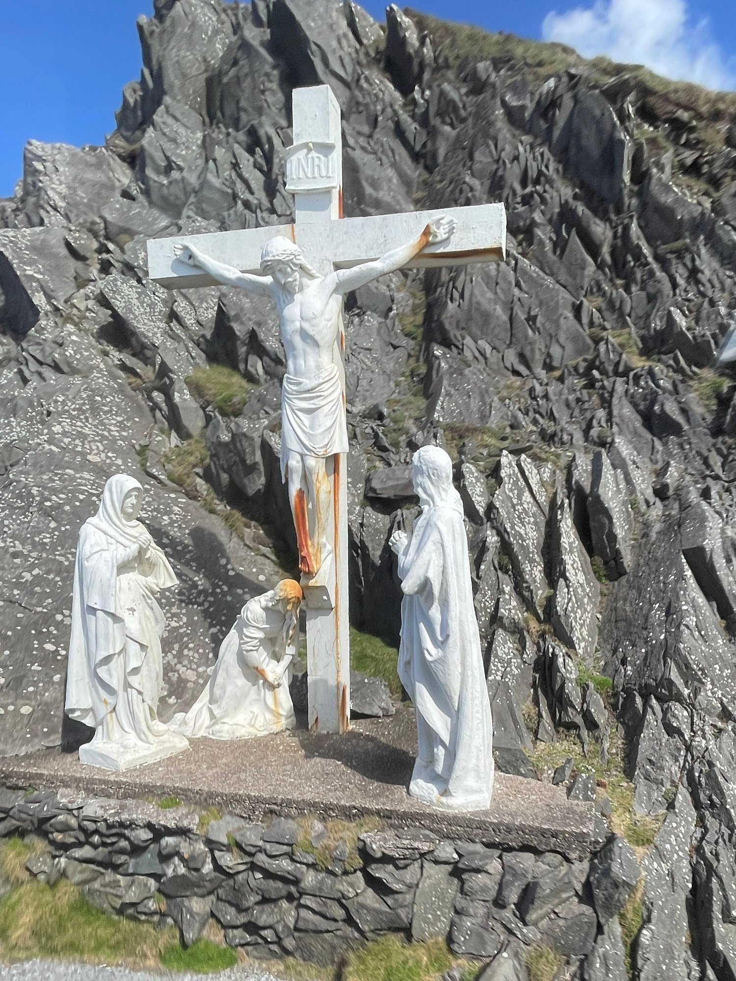 Later on, we had a short stop at Dingle coach park for a toilet break, and then continued to Ballyferriter and Slea Head. The Slea Head Drive- a scenic circle loop of 26 miles. We travelled through the small towns of Ventry, Dunquin and Ballyferriter. In this area, cottages and picturesque stone houses sat against a patchwork of fields. Slea Head is the most westerly point in Europe. It was a sunny day, the drive was absolutely stunning. The tour returned to the small town of Dingle for lunch after the beautiful drive on the Slea head drive. We returned the same route as we came after lunch, passing beautiful Inch beach again.