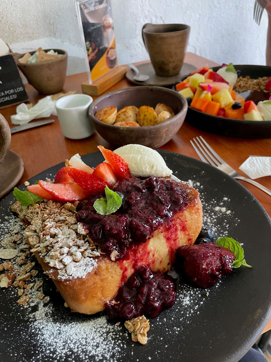 Look at that French Toast. It was more of cake than toast, covered in fruit, no syrup. Didn't need it.