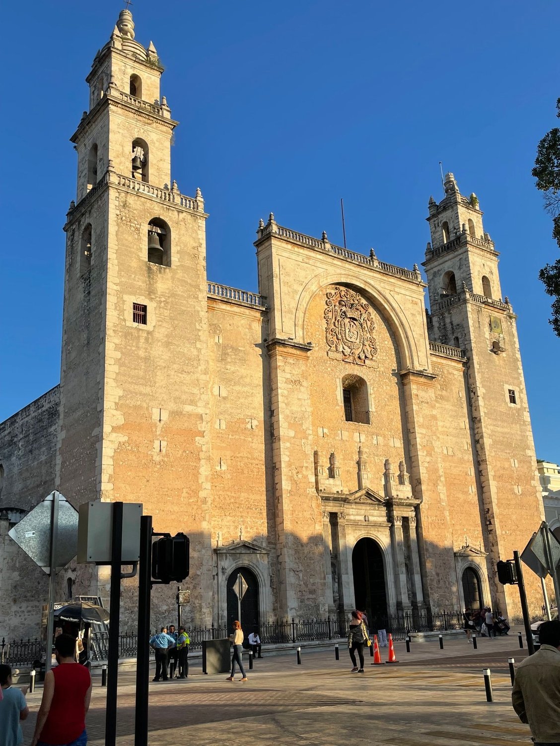 Every Saturday night in front of the Catedral there is a big show. We had read it was a demonstration of the Mayan ball game, but it actually is a show with Mayan characters. We were on the side and the view was not that great. The show is worth it but if you come here get there early for seats in the front. The dancers come through the crowd at the beginning and the jaguar was quite impressive. After the show we stopped for a marquesita, a crepe with grated Edam cheese and something sweet, chocolate, caramel, fruits and then it is rolled into a long cone.