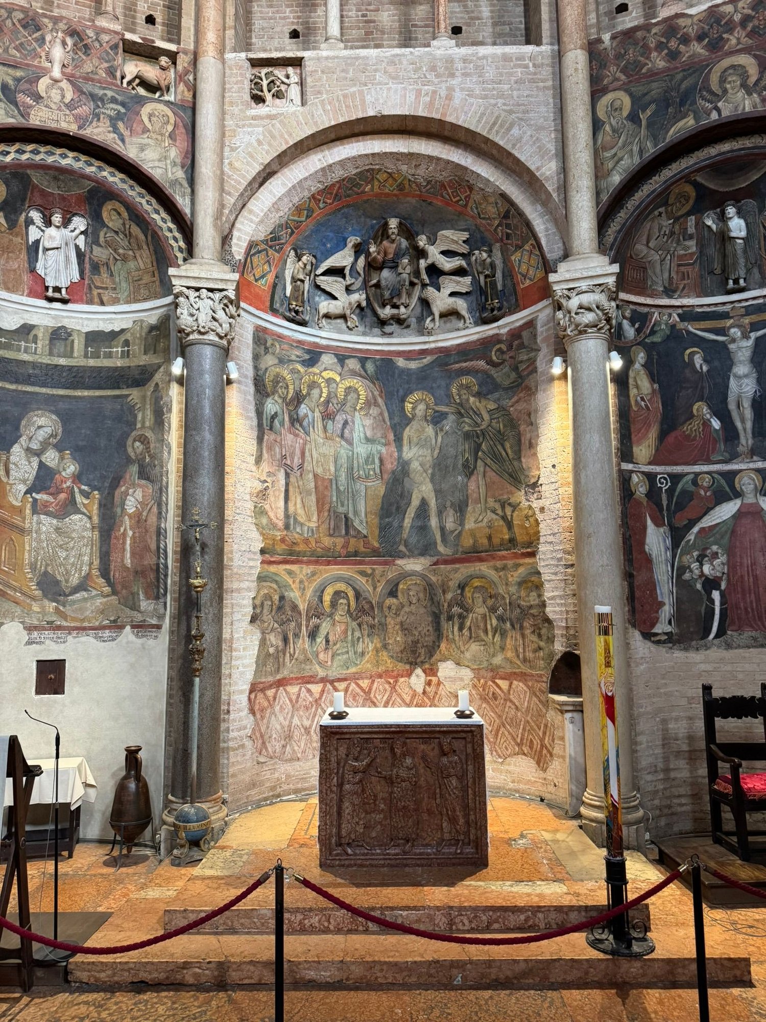 Interior of the Battistero with its 13th century Byzantine frescoes
