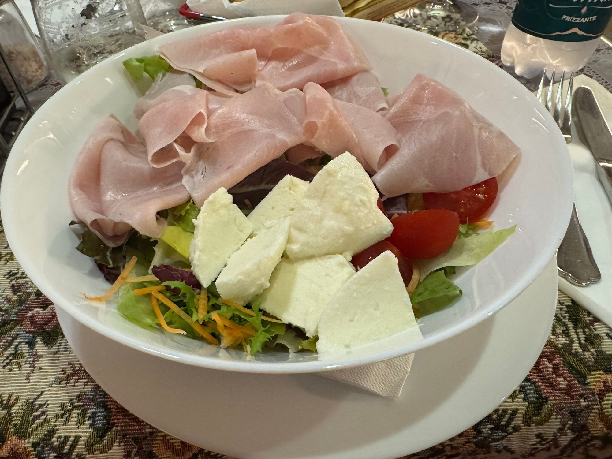 My salad with with Parma ham and mozzarella cheese