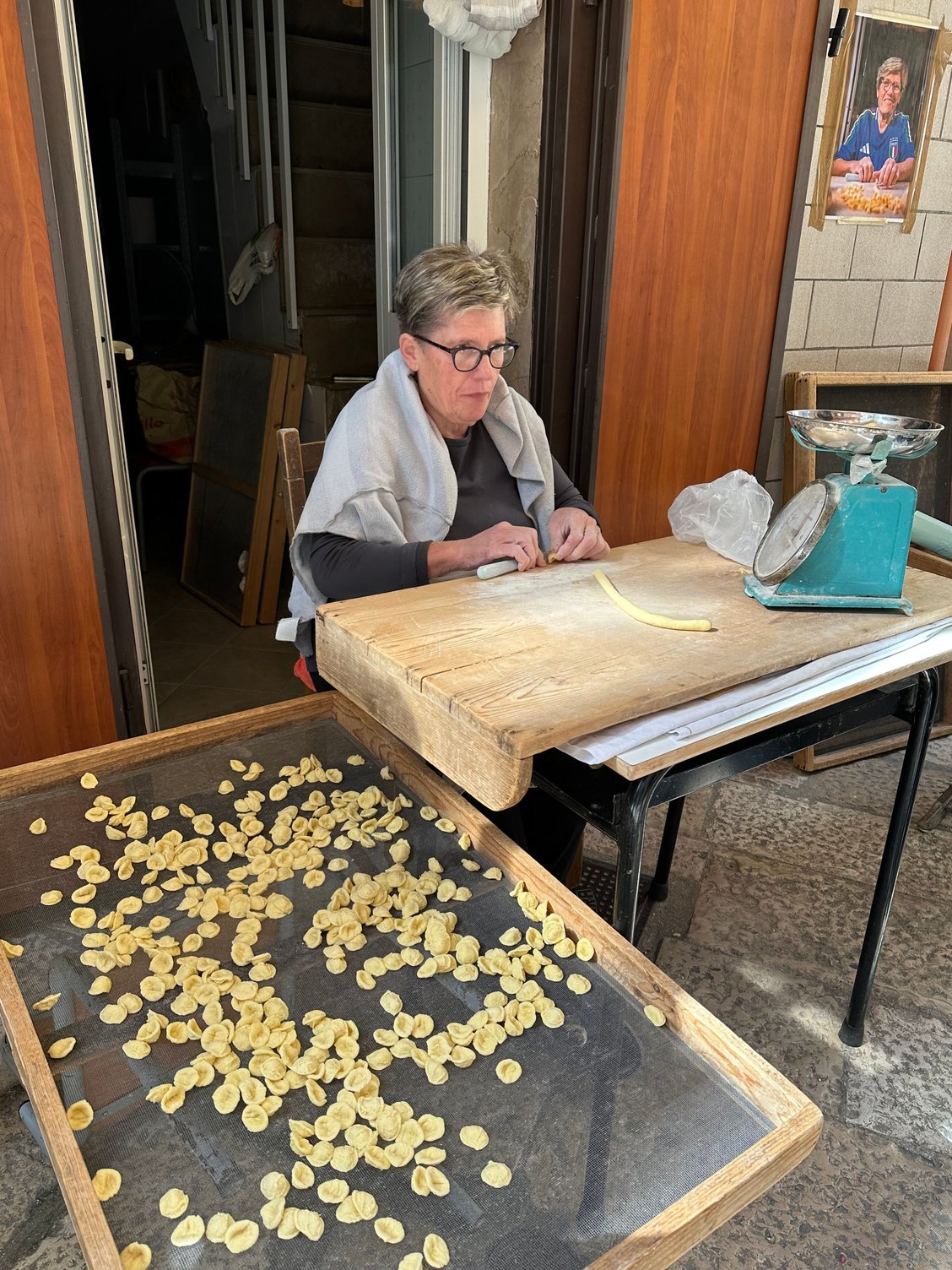 Honestly, there's not much to see on the street although you could snap some good photos if you can avoid the clutches of lookers. I'd read about the to-do last year when the ladies were fined for buying industrial pasta, re-bagging it and selling as homemade. And the last thing I need is a bag of orecchiette, since I have about ten bags in my pantry from earlier visits to Itlaly AND we can buy great Italian pasta at home. (which is not to say that I will not go food shopping).