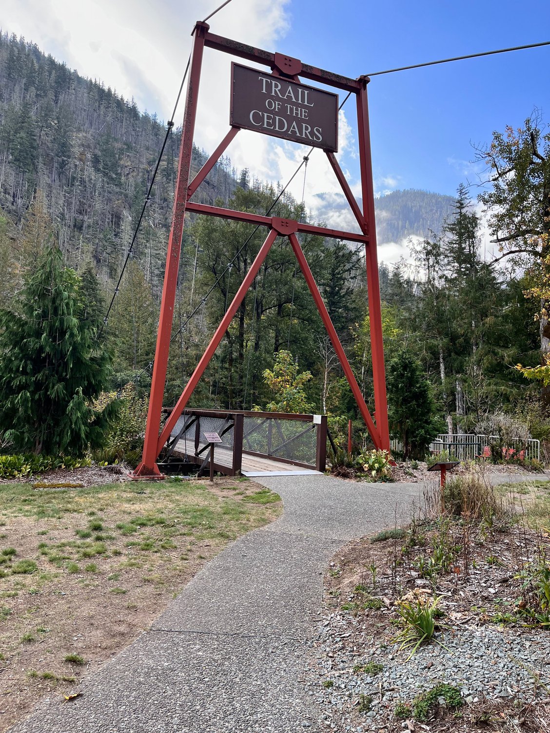 The drive into North Cascades Park was marred by poor visibility. I knew I was in a beautiful place, just couldnt see it! I stopped in the nice visitors center in Newhalem. There are rangers, displays and good restrooms. Behind the visitor center, theres a short trail to an overlook.