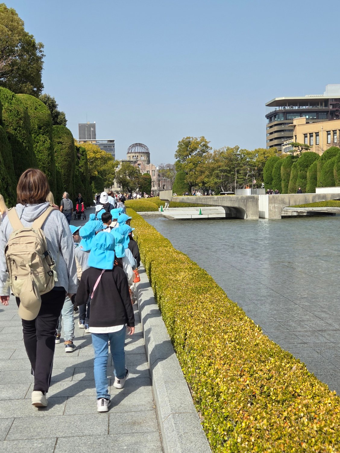 Walking towards the eternal flame in Peace Memorial Park