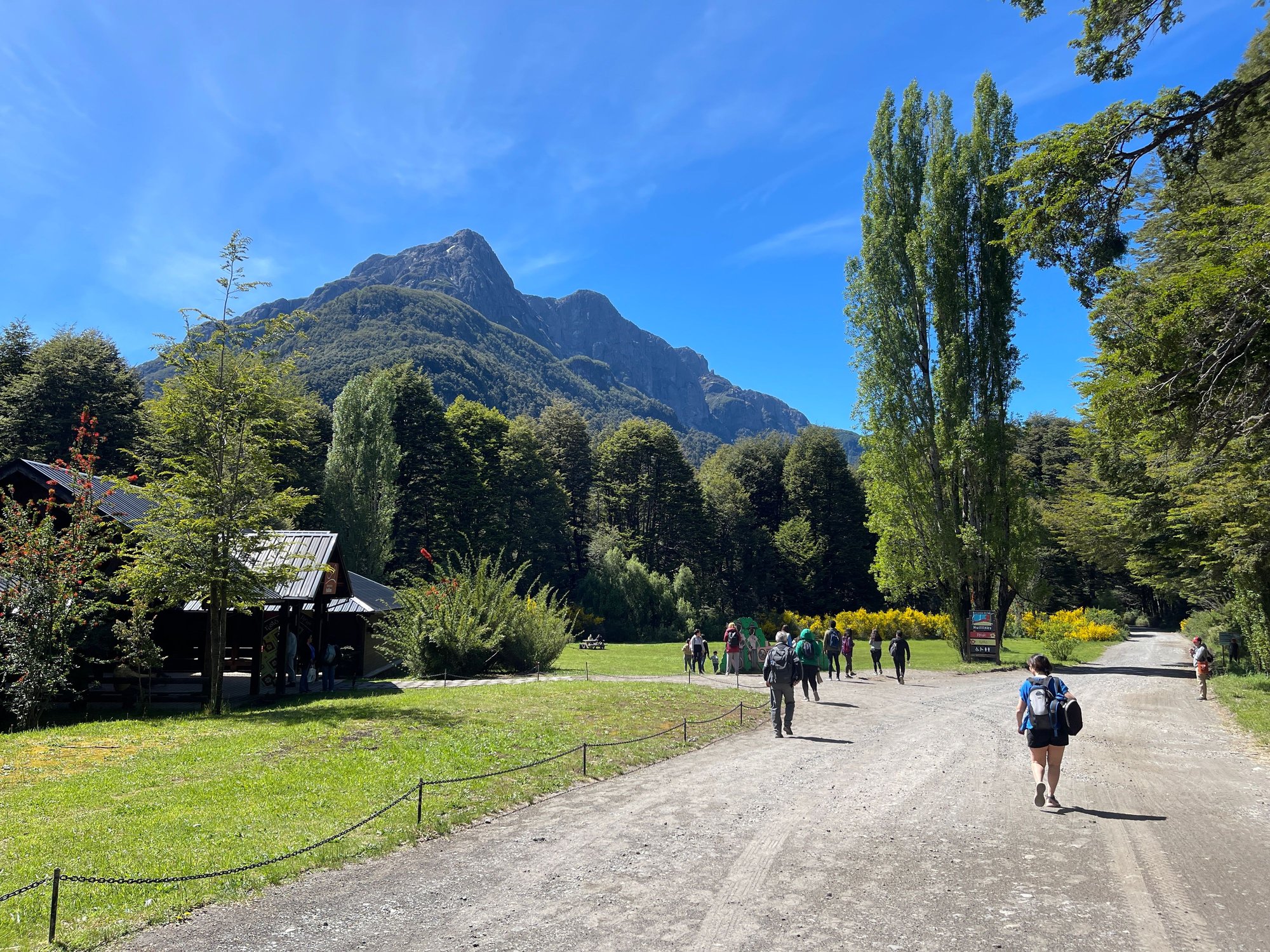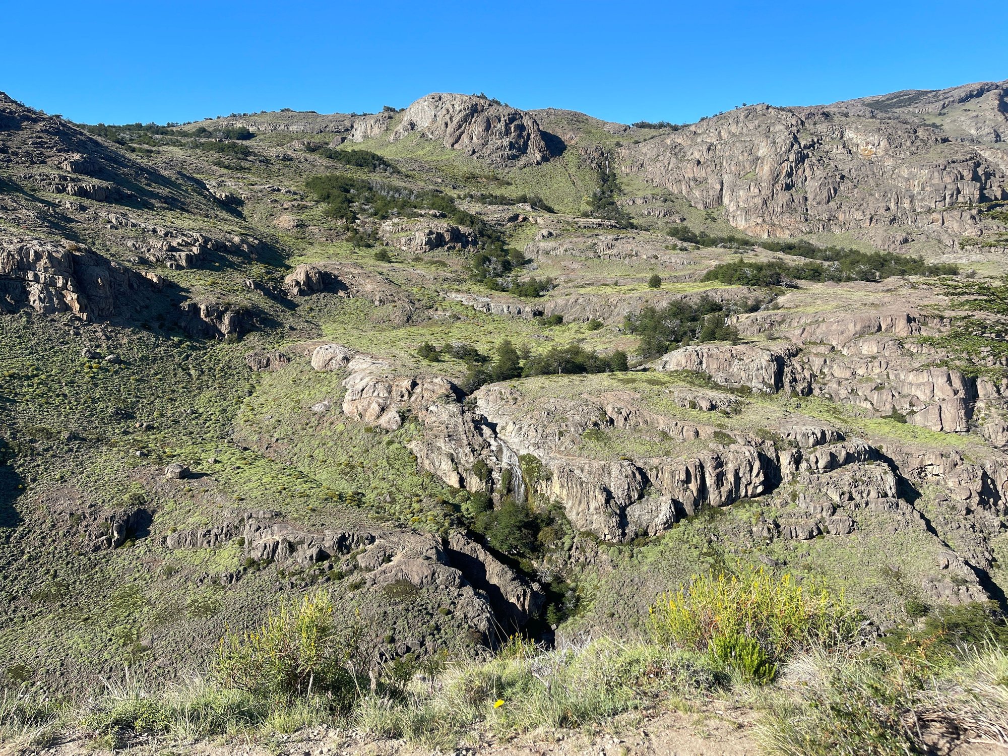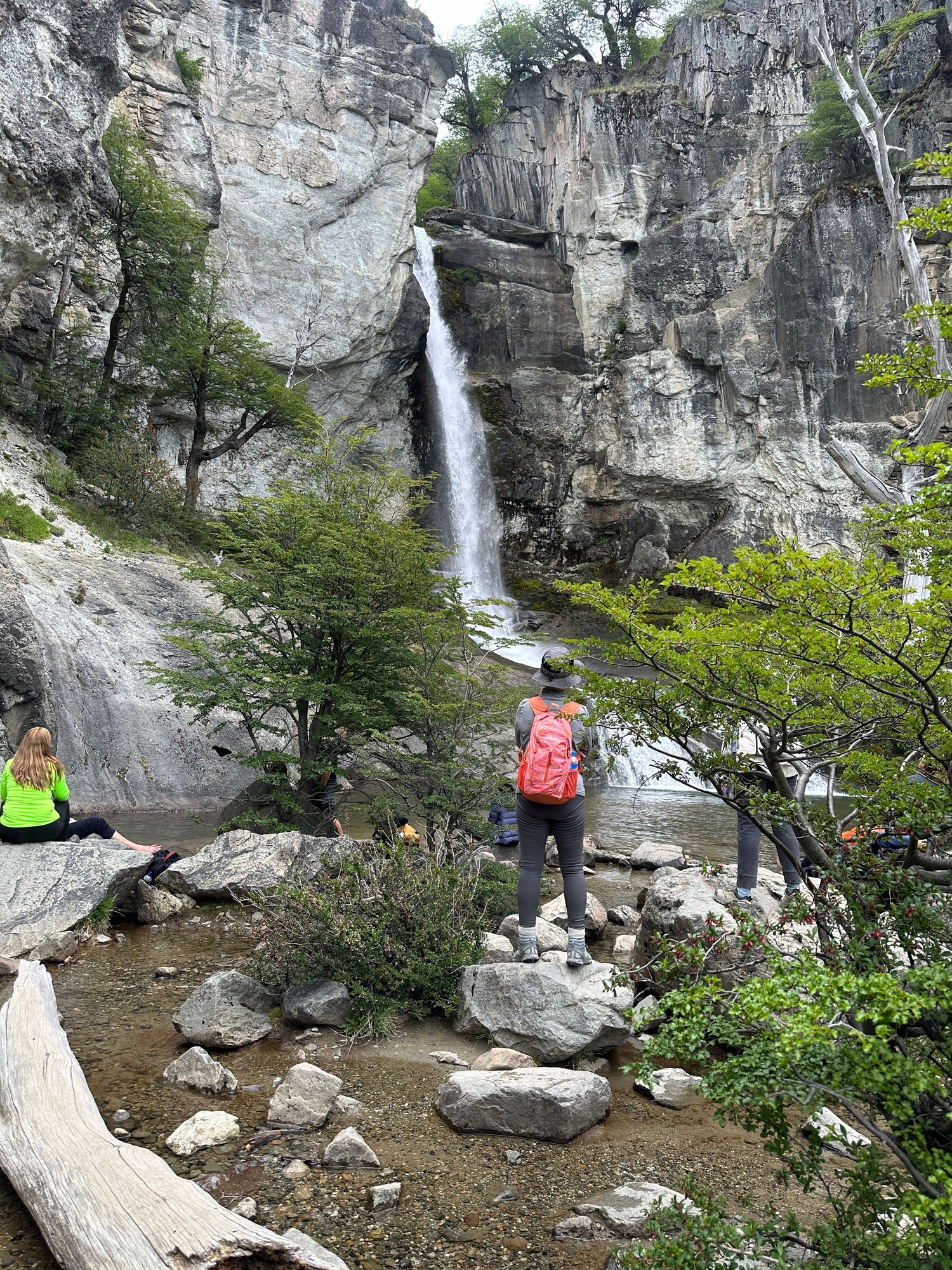 - The next 4 days forecast for El Chalten were sunny. We were happy and anxious to get on the bus to El Chalten. We pre booked the Caltur bus which coasted-US25 round trip per person. We were able to get the second row seats on the upper level. The scenery on the way was gorgeous and the Andes backdrop with the lakes were so beautiful. Cerro Fitz Roy came into view when we passed the half way rest stop. It was stunningly beautiful! After traveling for more than 3 hours, we arrived at El Chalten. We had booked Grande Rancho hostel for 3 nights. It was situated near the trailhead for our planned hikes. We had a double room which cost US$158 for the 3 nights. After checking in and having lunch at the hostel’s restaurant, we set out for our first day warm up hike with a 4.5 mile round trip to the waterfalls-Chorrillo del Salto. It was an easy and popular trail for sure.