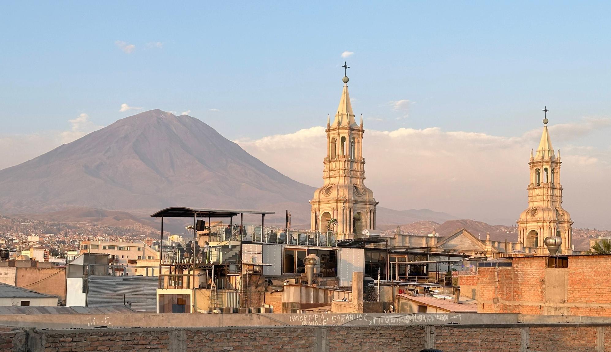 Cathedral backdrop with Mount Misti??There