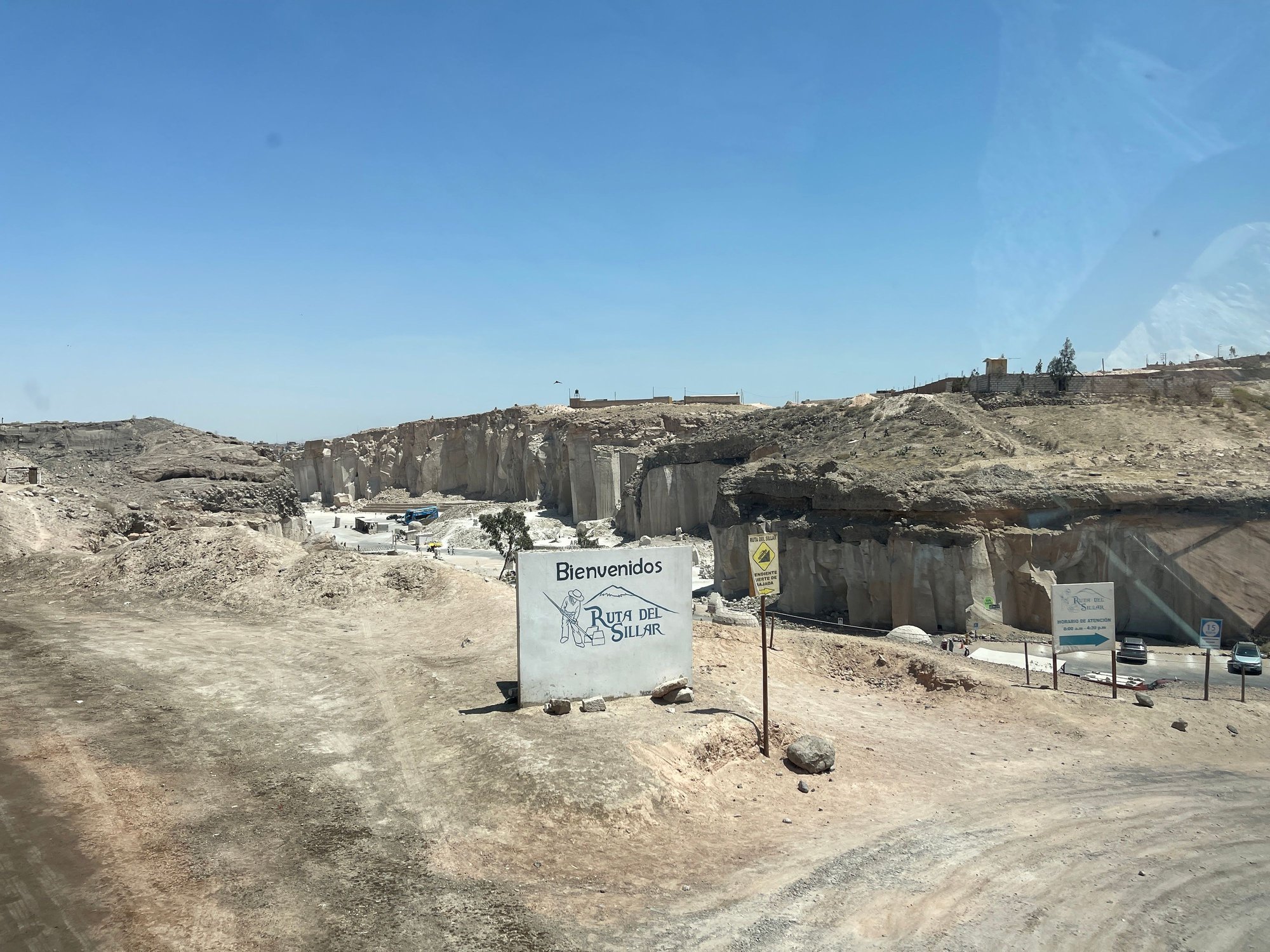We left Mirador de Yanahuara, and arrived at the sillar quarry— Añashuayco quarry. It is one of the most impressive natural landscapes and is a treasure for the Arequipeño people, where the iconic sillar (the white volcanic stone used in the colonial constructions of Arequipa) is extracted.