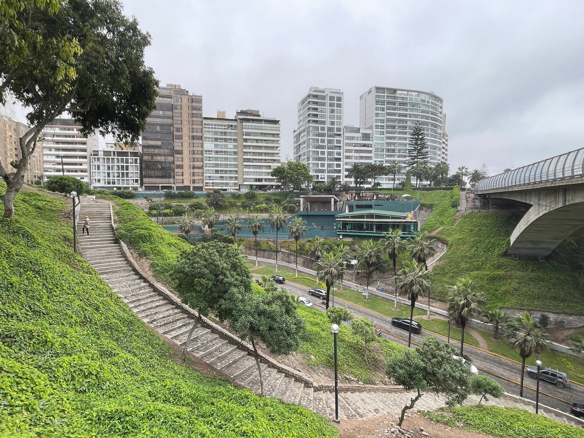 We crossed the pedestrian bridge, climbed the stairs up the cliff, and back to the Miraflres area. This concluded our visit for Lima. We would continue our journey in Peru to Arequipa the next morning.