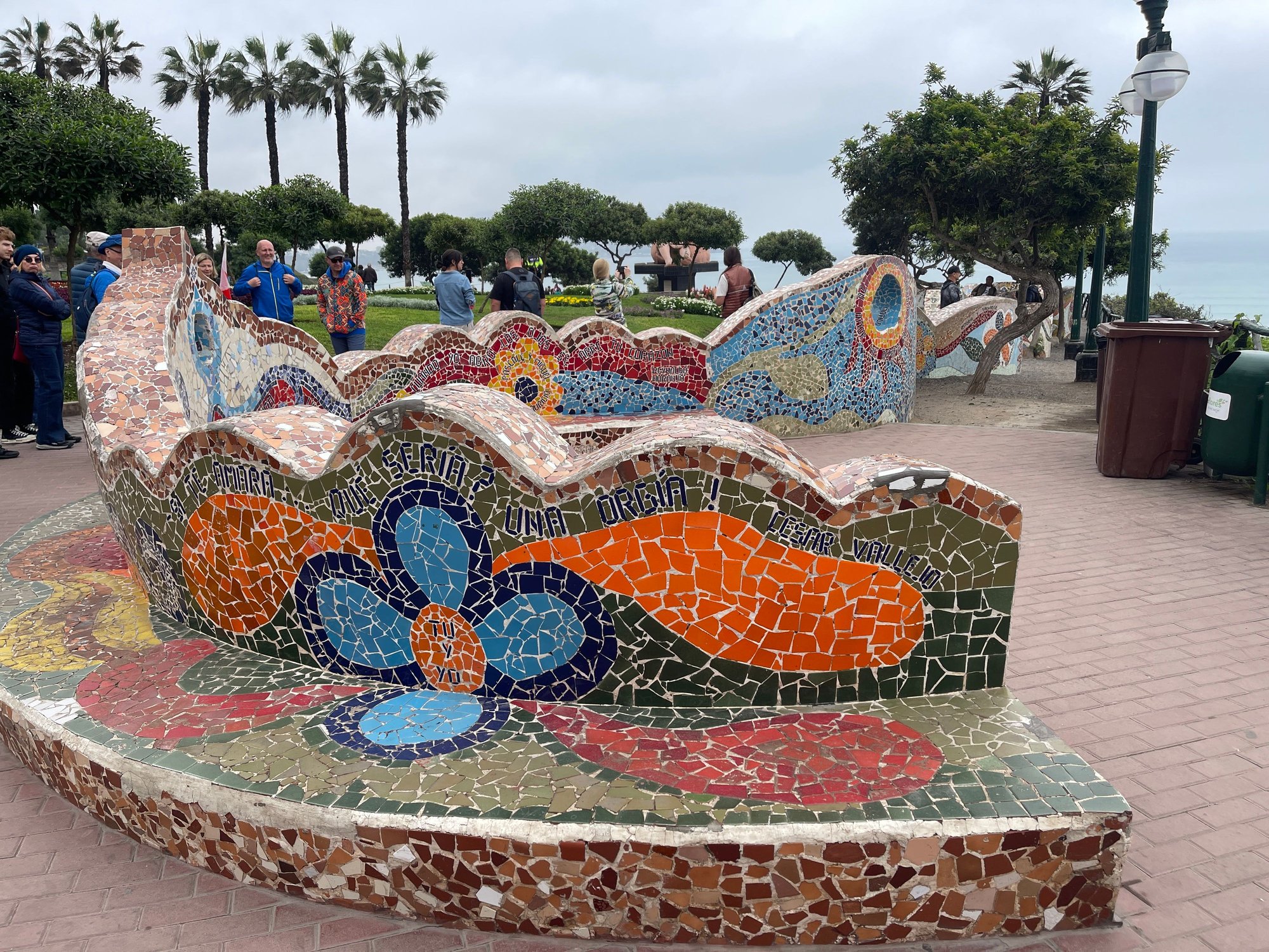 Lima’s ocean front is boarded by the major highways, and with sheer cliffs over the other side towards inland. There was no visible way to walk down to the beach along this section of the upper Clift with the lighthouse. We decided to walk along the upper cliff path towards Larcomar. We walked past Love’s park, and the mosaic walls resembles a mini scale of Barcelona’s Park Güell. It was a pleasant walk and the sea breeze was constantly blowing inland.