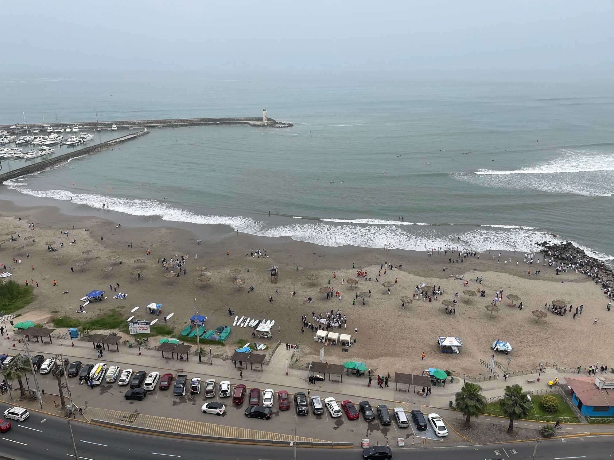After the steep steps descending the cliff, we used a pedestrian bridge crossing over the busy Costa Verde highway to access the Barranco Beach situated on the side of the highway.