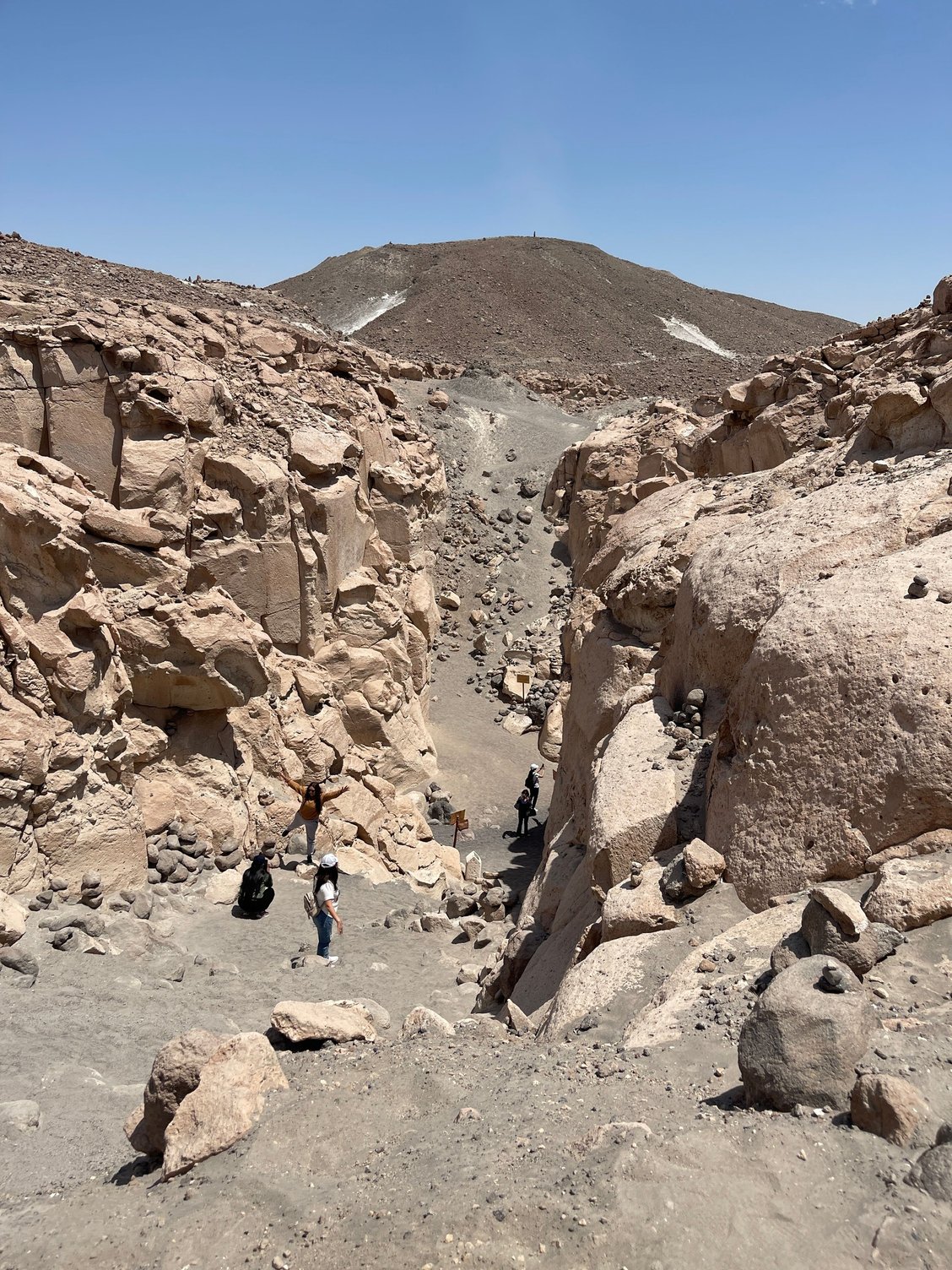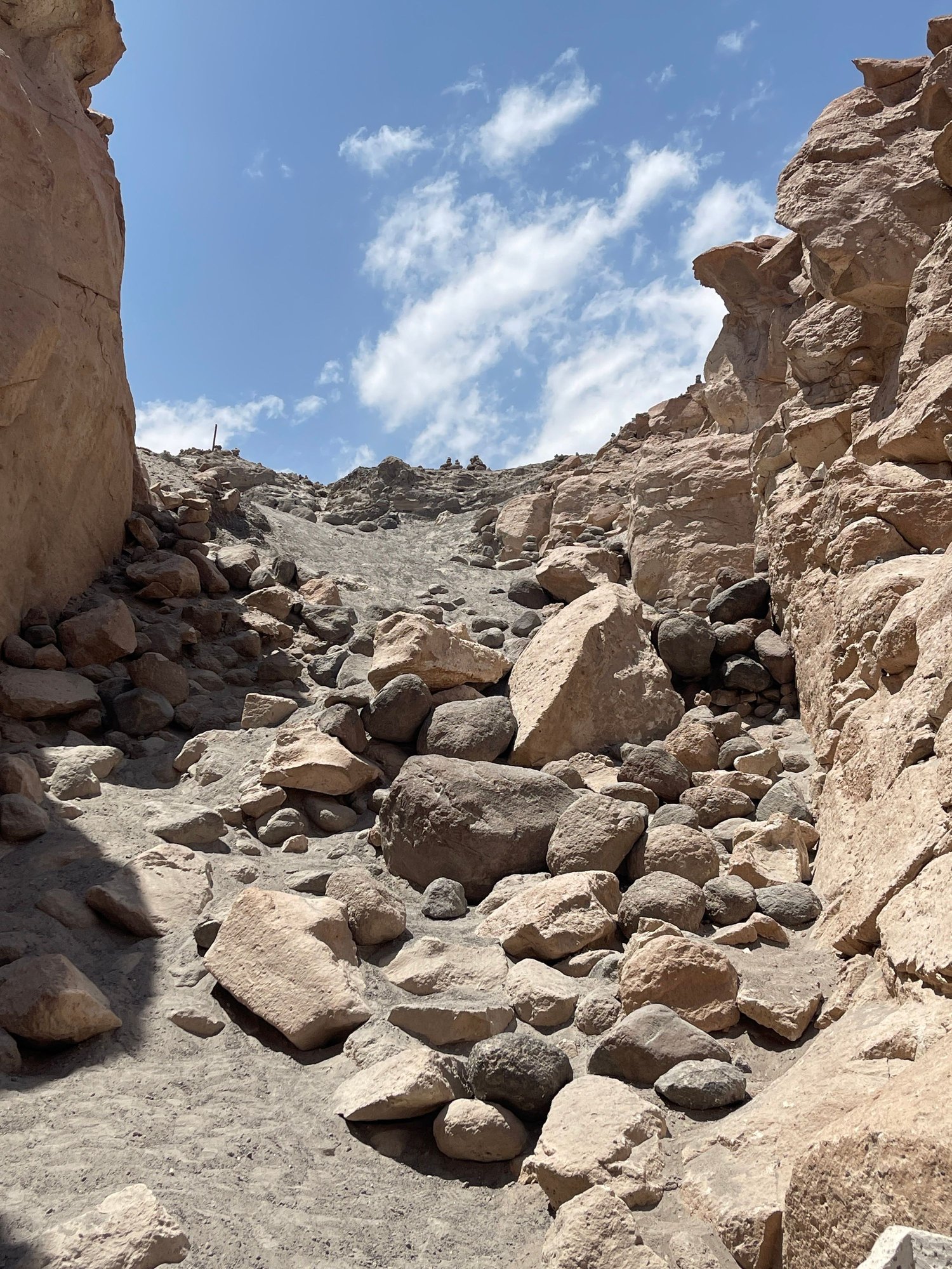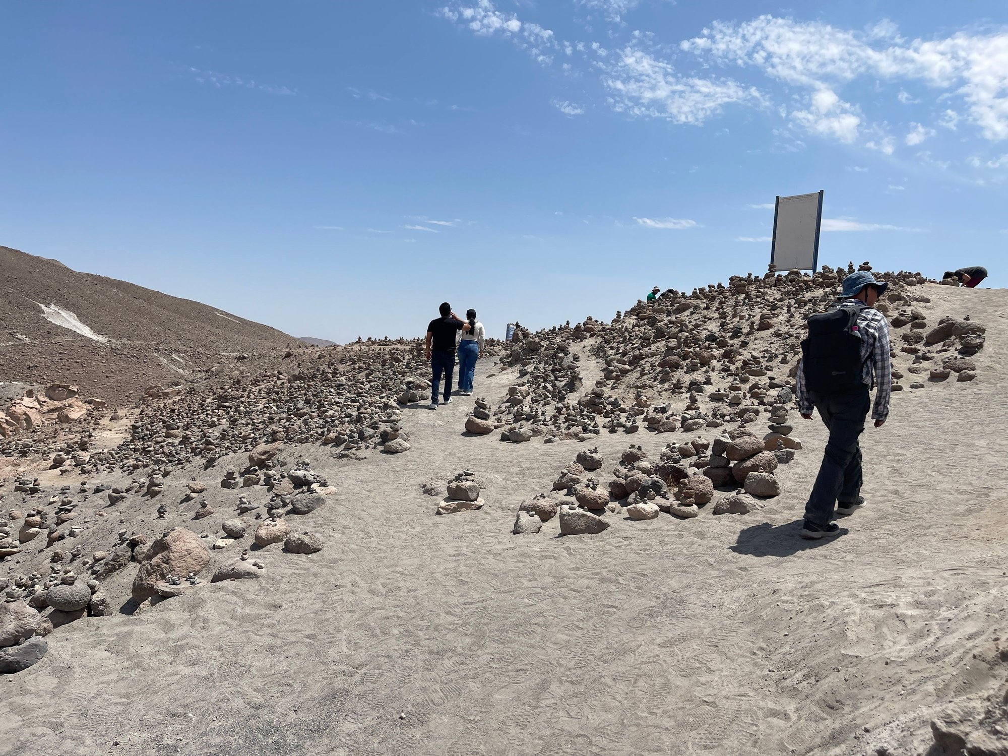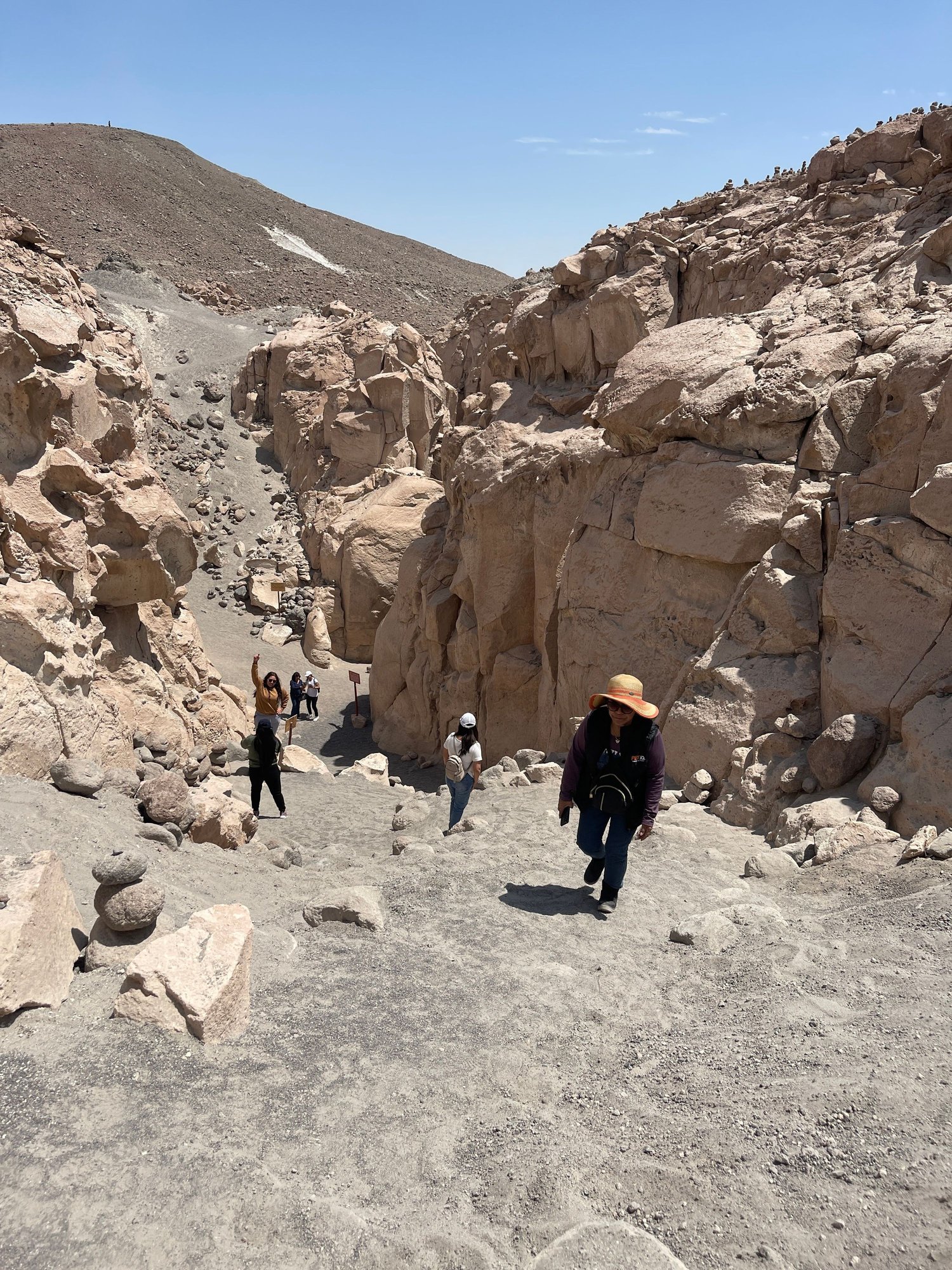 We then climbed a screech slope to the top of the ravine. At the top, we were shown the Apachetas, stone mounds that represent a mystical tradition for the local residents.