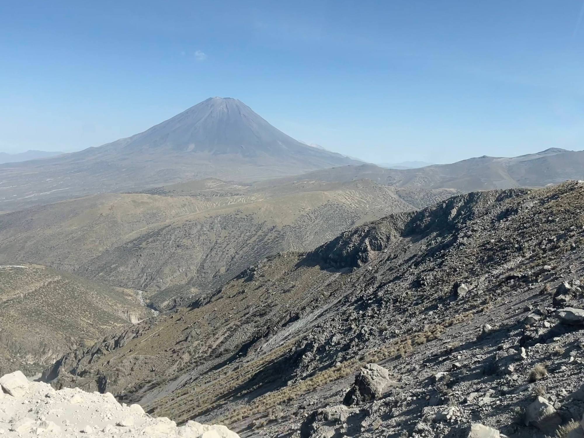 At the Mirador de los Volcanes, a panoramic point from where we could see three imposing guardians of the Arequipa landscape: the volcano Misti, the Chachani and the Pichu Pichu.