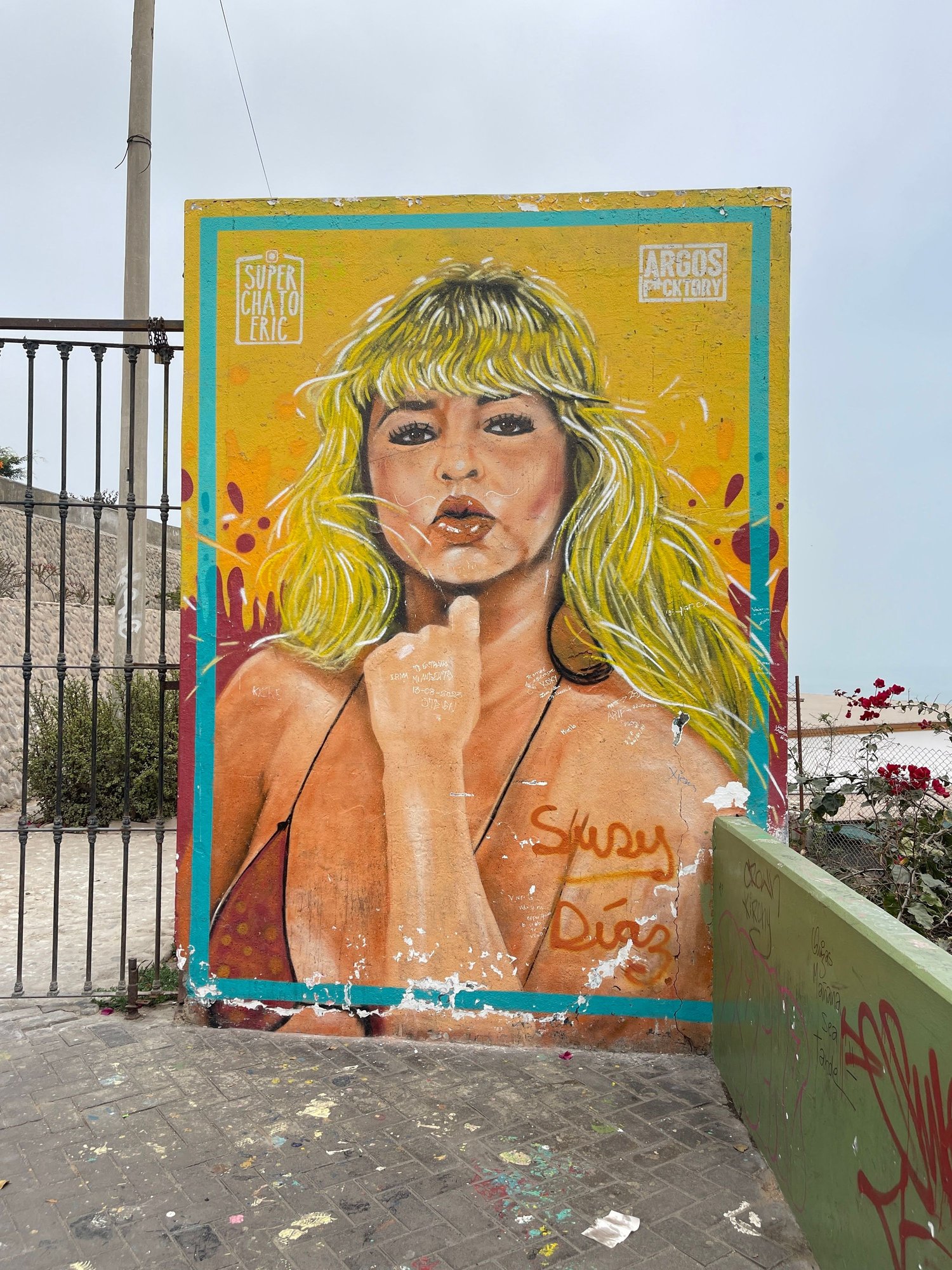 After Museo Pedro De Osma, we crossed the street, found the street to the Bajada de los Baños (Descent to the Baths/ Path to the Beach). We continued to the Bajada de los Baños (Descent of the Baths), passing through a lot of beautiful street art on the walls, colorful shops and galleries.