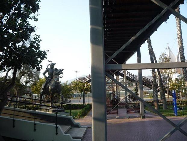 The valiant conquistador Francisco Pizarro in his corner of Lima’s Park of the Walls, dwarfed by a pedestrian bridge. (A bit of a come-down from his earlier spot in the center of the Plaza Mayor.) I’ver never found out what those two things coming out of his helmet are supposed to be.