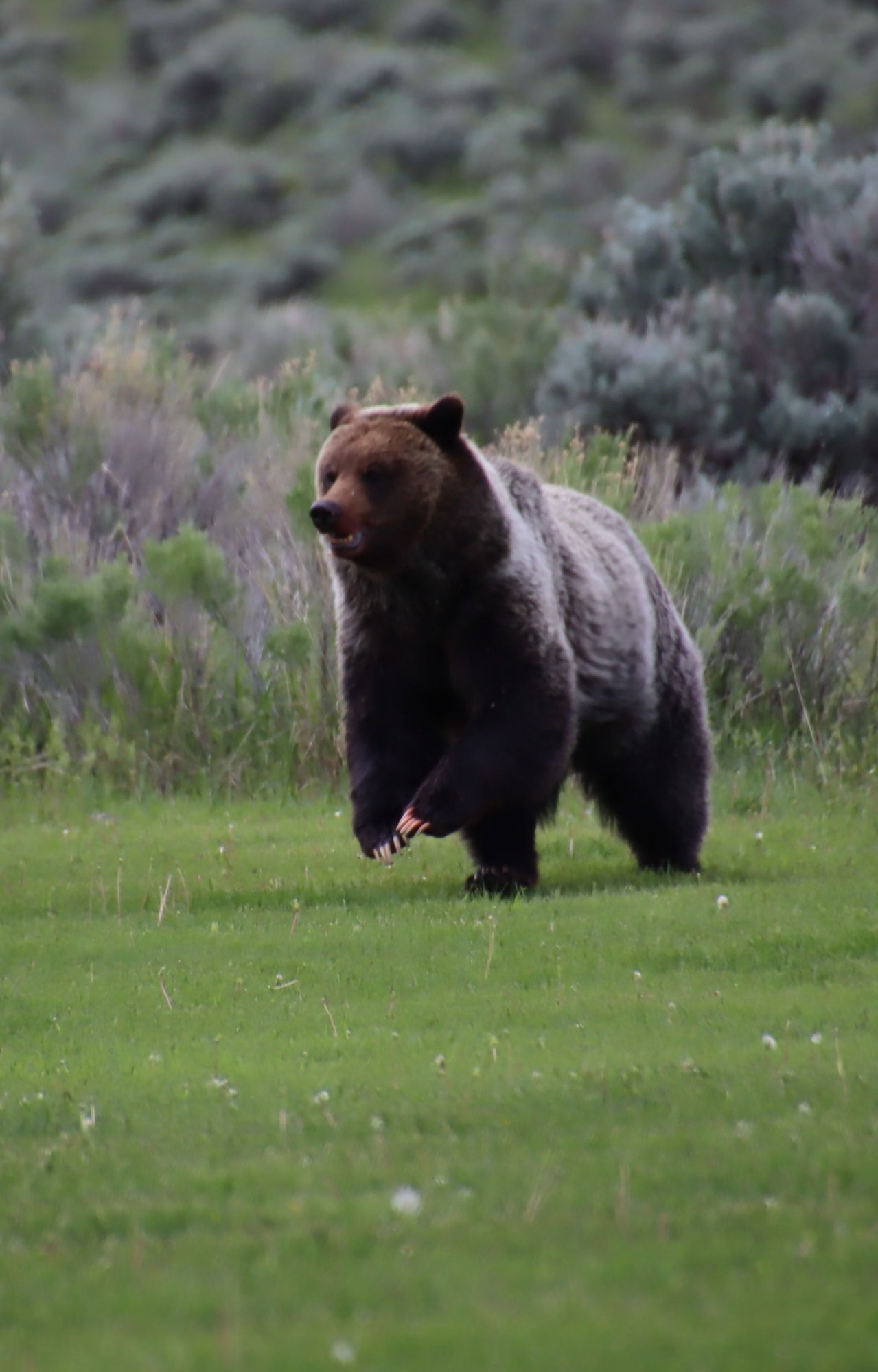 The photo of Blondie was over 100 yards using a 400mm lens and further cropped. We were on Pilgrim Creek Road. The drive by of 610 and her cubs was closer on the same road which is why the ranger closed it. I'm not sure how close the bear at Mammoth Hot Springs was before we got to our car. It probably wasn't that close but it sure felt like it when I saw it running down the road in our direction. I had to yell at my husband cause he couldn't see the bear from his vantage point. That was on Officers Row in front of the visitors center. The road itself is about a quarter mile long. Rangers arrived almost immediately to try to haze the bear so it seems this wasn't the first time that bear came into the area. A lot of elk bed down in the sage there. As a matter of fact the elk seemed agitated right before this happened and we should've realized something was up.