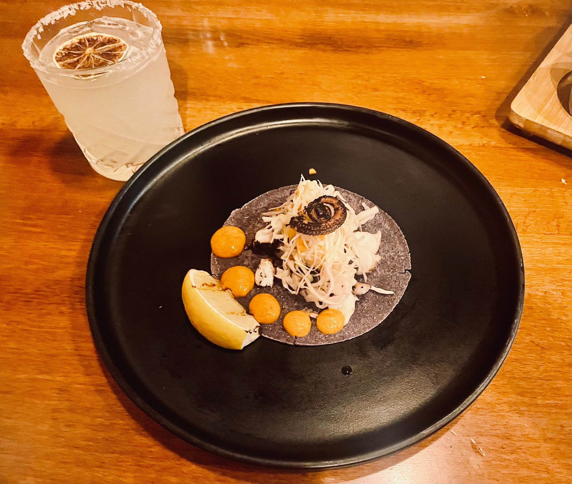 Charred octopus topped with pickled slaw, neatly piled atop a blue corn tortilla, with pipian rojo. Hands down, this was “the best” non-BBQ/non-homemade meal of our entire road trip. And we live in the D.C. area, which touts itself as having a crap ton of Michelin-starred restaurants and eateries with all sorts of acclaim, yet none of them have ever considered the simple elegance of a charred octopus taco. Or a perfect Margarita, for that matter.