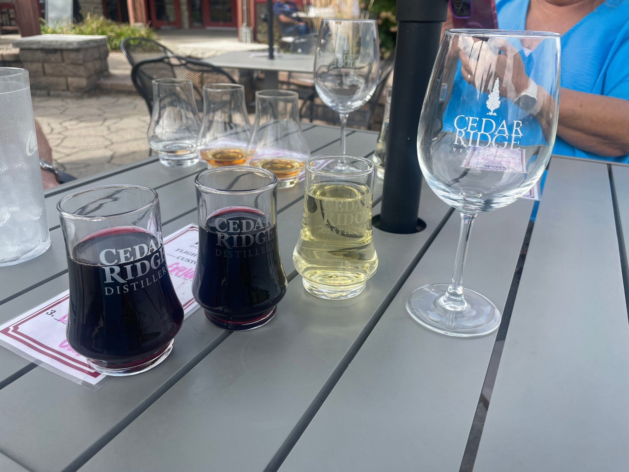 Lunch was at Little Bohemia, near to the Czech Village. I won’t write that my Goulash was like that I have eaten throughout Central Europe, but nor will I write that it tasted like it came from a grocery store tin can. It was somewhere in between, and not that memorable, alas. A shame, really, for the museum and the area could benefit from bolstering its Central European heritage. Our final stop on this much-abbreviated tour of Cedar Rapids was the Cedar Ridge Distillery (and Winery) with our friends. DH is more partial to Bourbon than to beer or wine (though, our DS is a microbrew hobbyist and had an excellent Porter on tap when were in IN—perfect with those thin-crust pizzas).