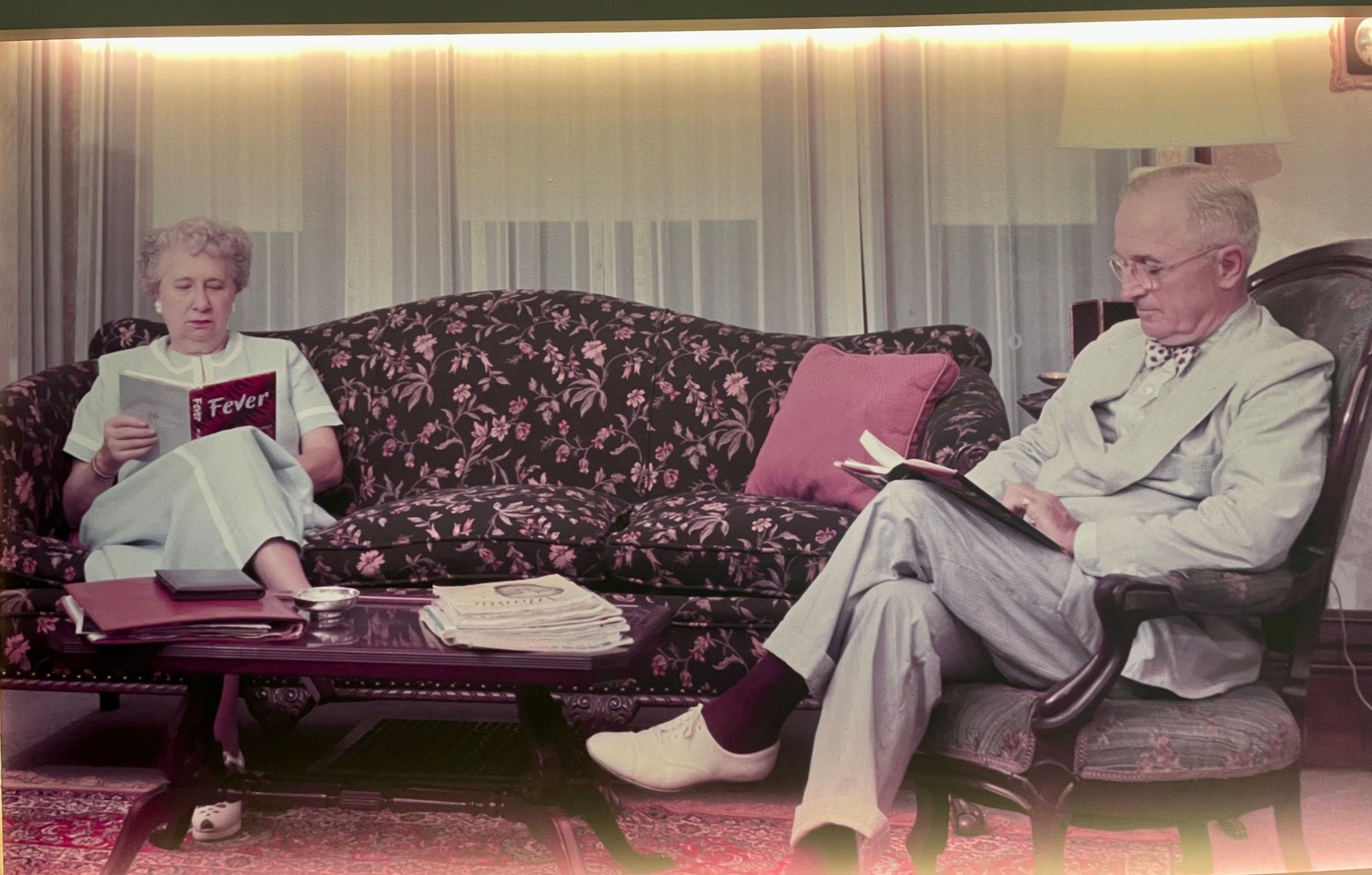 In this not-at-all-staged photo of the First Couple, Mrs. T. is doing a little light reading…about “Typhoid Mary.” I too curl up in the evenings with books about superspreaders of infectious diseases. So relatable.