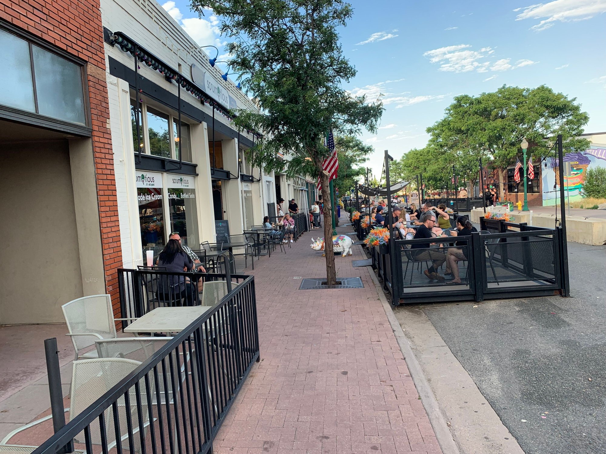 Golden is in a particularly beautiful area of the foothills, with Mount Zion on one side and Castle Rock with the Coors brewery on the other (to name two more prominent of multiple high points surrounding), with delightful walking paths with shady spots along and bridges crossing Clear Creek, whose rapids kayakers and paddle boarders seemed to be savouring. Like in Arvada, appealing commercial establishments can be found up and down Washington Street in downtown Golden with its famous arch, including Buffalo Rose, a saloon-like spot where I was told Buffalo Bill once drank. I stopped for lemonade and later ice cream to cool down from the heat today!