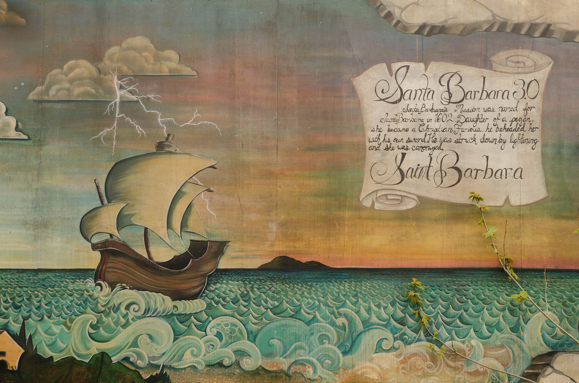 A historic mural located by the Post office in the eastern section of Santa Barbara known as Summerland.