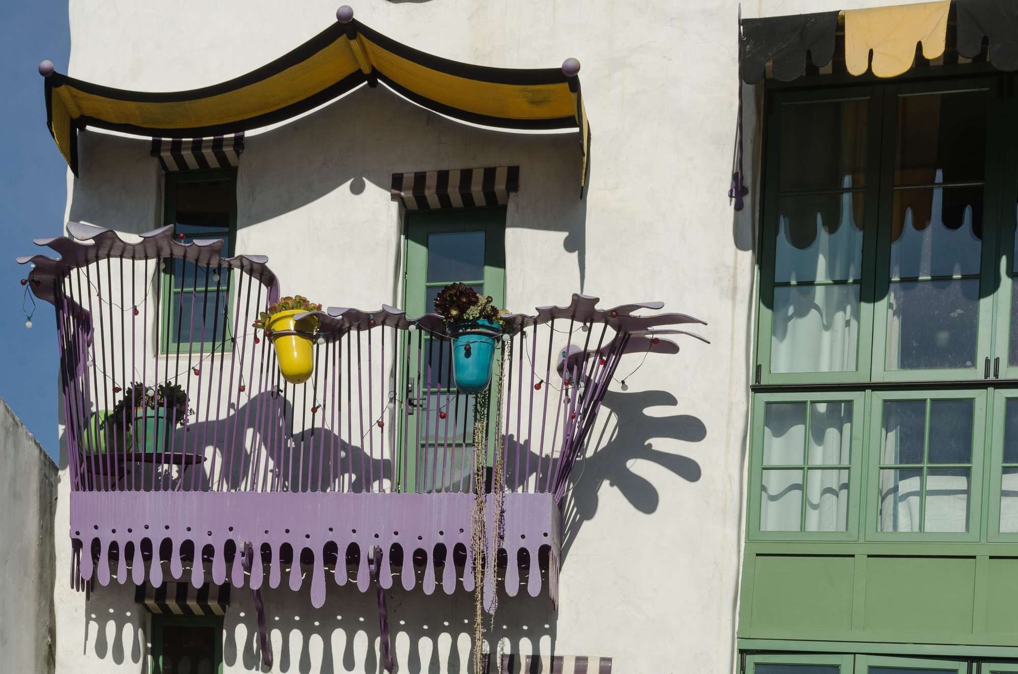Local architect hero Jeff Shelton is known for his whimsical style, a sort of Dr. Seuss meets 'alternate adobe'. Seen here is his 2002 Pistachio House. We met the pair of Carolina couples who'd rented it. They actually offered us an interior tour, but we passed out of discretion.