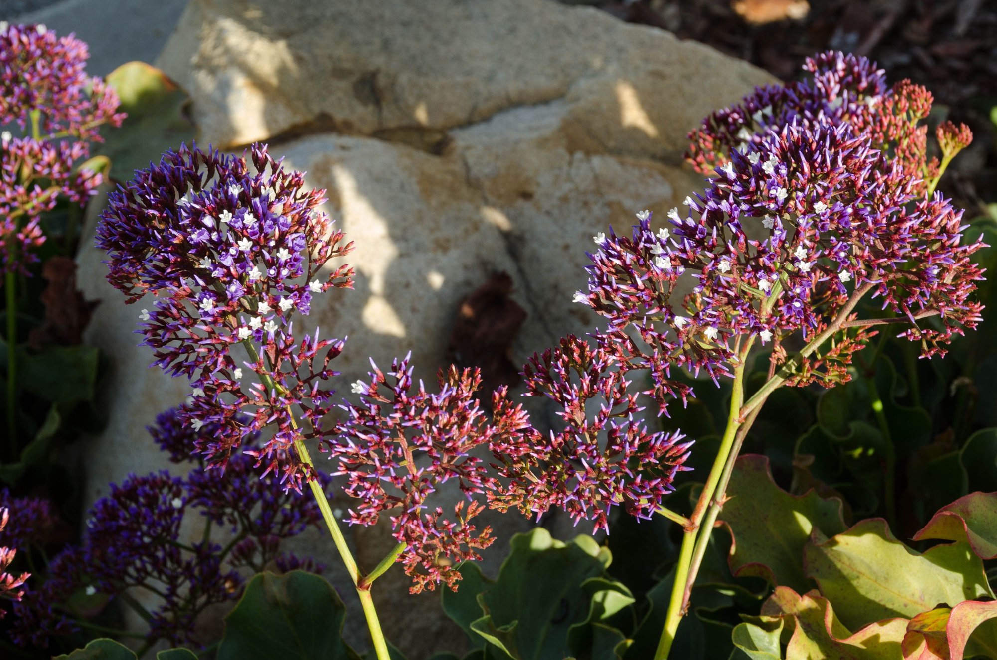 (From Lonely Planet) 'Sprawled across 78 hillside acres with panoramic coastal views, this is part garden and part hiking wonderland.' Above is the uber-modern Pritzlaff Conservation Center (washrooms), with its carefully-placed outdoor seating. Nearby were the first of many attractive boulders we'd see at such gardens: Mother Nature as art gallery. Note that there are occasion 'Free Seniors' days. That does not mean that you get to take an elderly woman home, rather it means there is no fee.