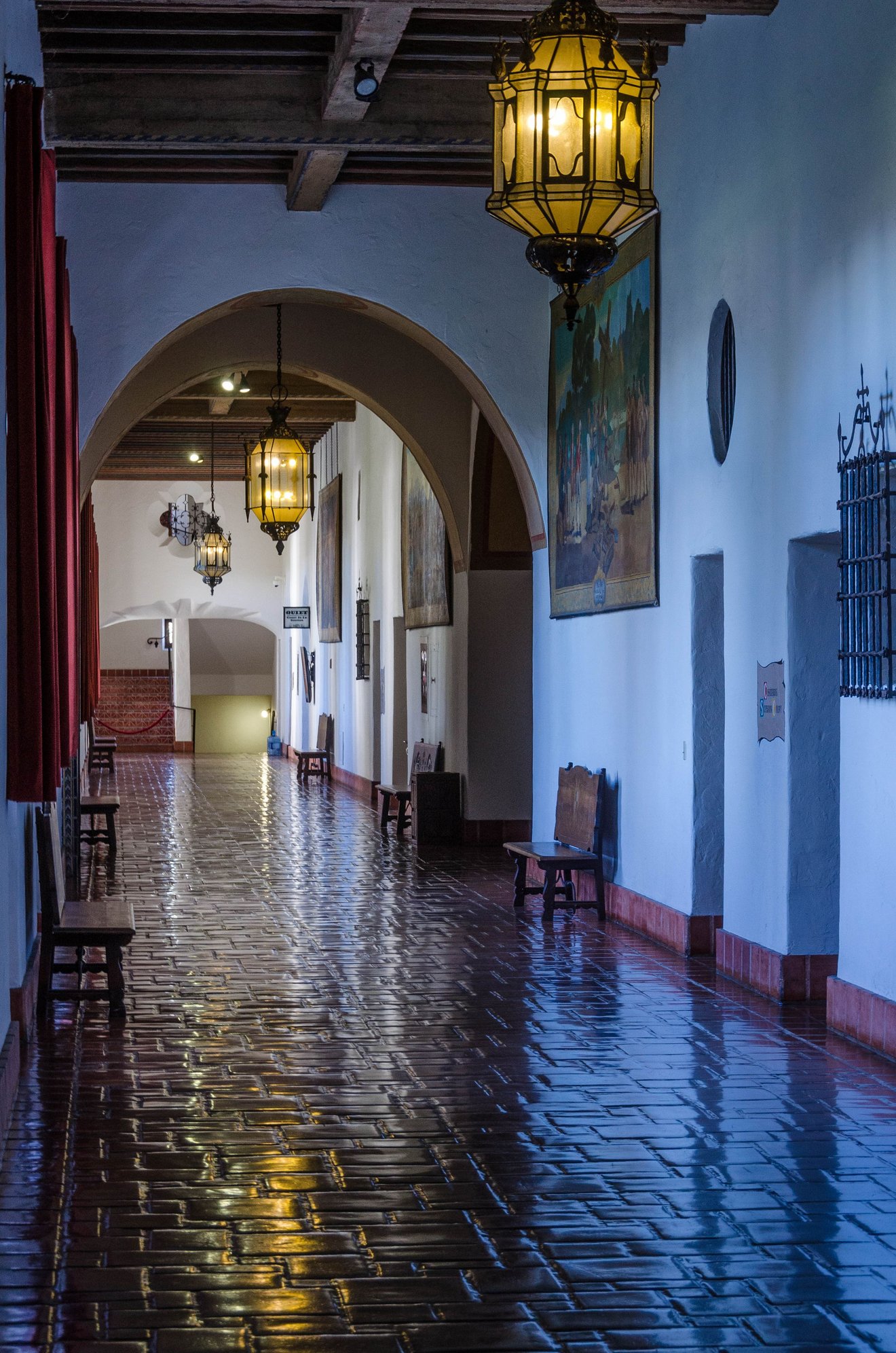 There is a palace feel throughout the Courthouse, as though one is visiting say, somewhere in Andalucia. True story: some macho Mexican father visiting with his family and all dressed to the nines, seemed to want to contest me with his own whistling. As a former musician (my first career), I have an unconscious habit of whistling whenever so inspired. Here, we noticed that every time I whistled a spontaneous melody, that dad would immediately competitively produce his own counter-offering!