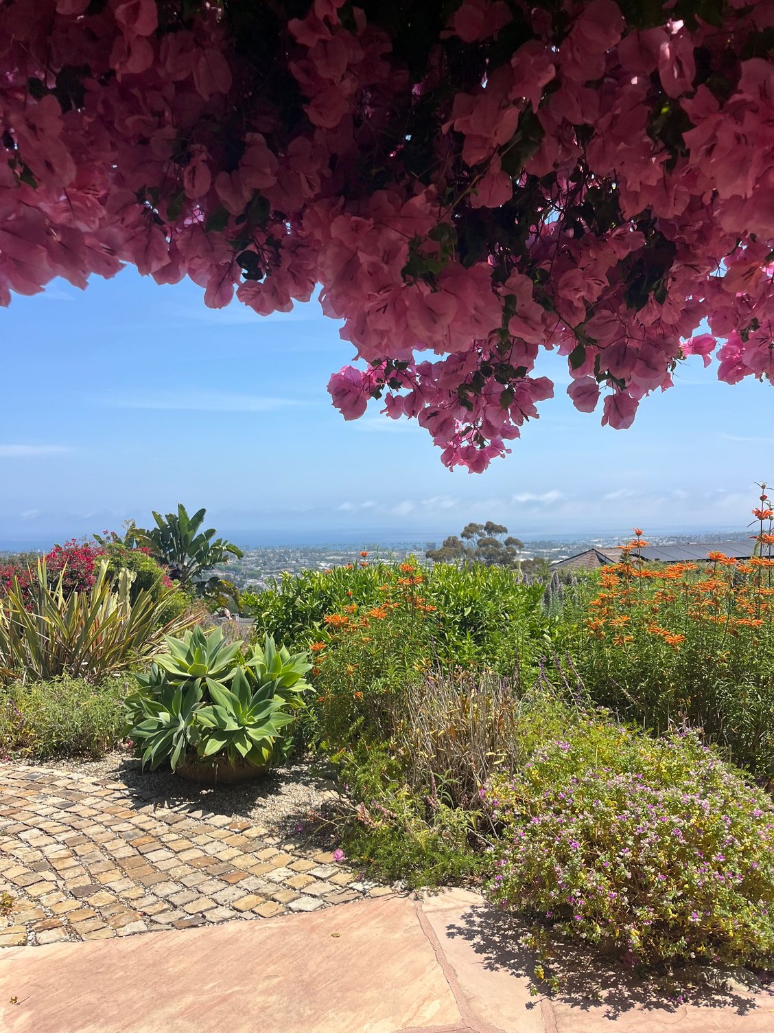 Now for Lotusland. Polish opera star Ganna Walska and her sixth husband bought this 37 acre site during WWII. She devoted the rest of her life to creating a magnificent private garden. Note that it stays closed each year til February. Prior to our entering, I trotted across the road to chat with the Principal of Cold Springs PS. who was then getting out of her car in the parking lot. She informed me how the Montecito fire department just down the street was still assisting stations from Carp, Summerland, Santa Barbara City (and county) plus Santa Maria, Lompoc, Vandenberg (Hi Elon) and Guadalupe in battling the fires nearby. Btw, we nicknamed our own landlady's incredible private garden 'Little Lotusland'.