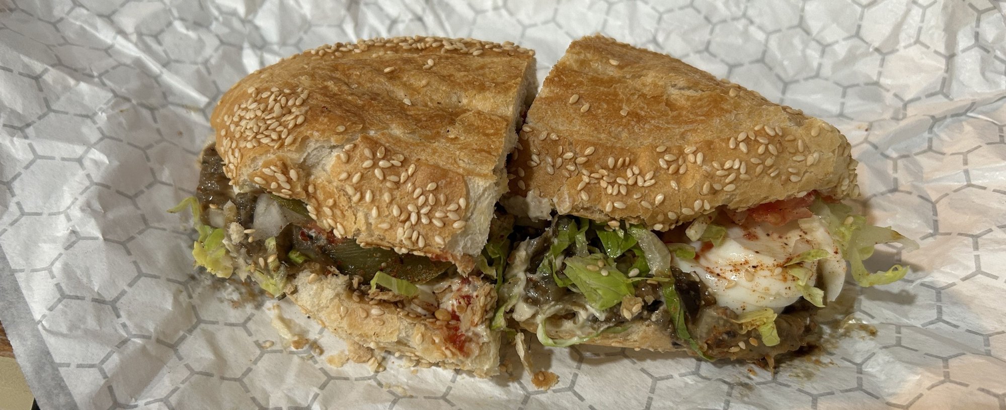 After Zaragoza, I was going to be difficult to impress. Only moments, later, though, I spied the ka'ak at Ragadan. Ka'ak is a bread from Jordan, ideal for making sandwiches. I got the eggplant ka'ak, though I think any of the fillings would be amazing on this bread. One of the great sandwich breads of the world: