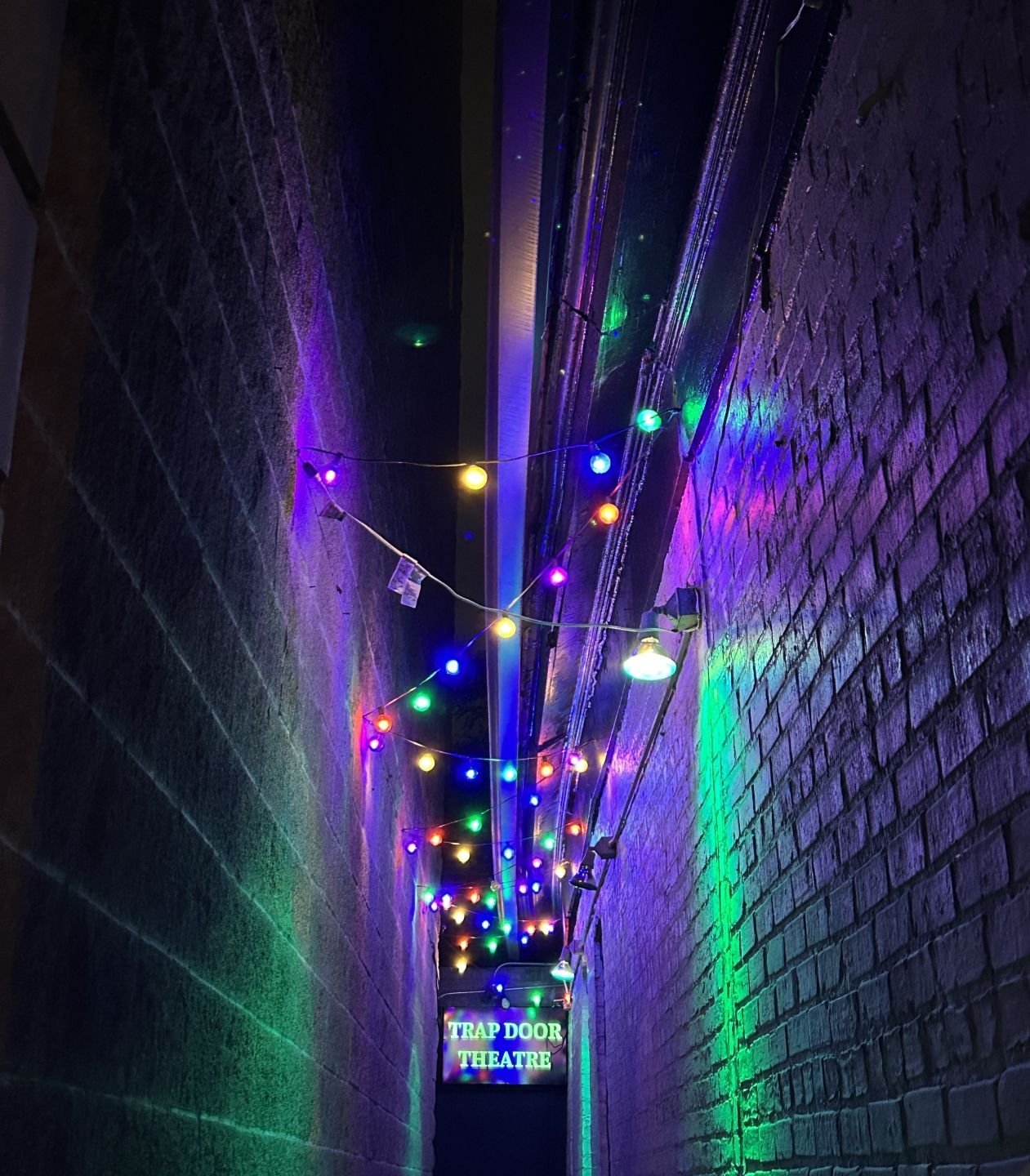 I ended the evening going to the tiny Trap Door Theatre. As you see, it is at the end of a pedestrian-only alley.