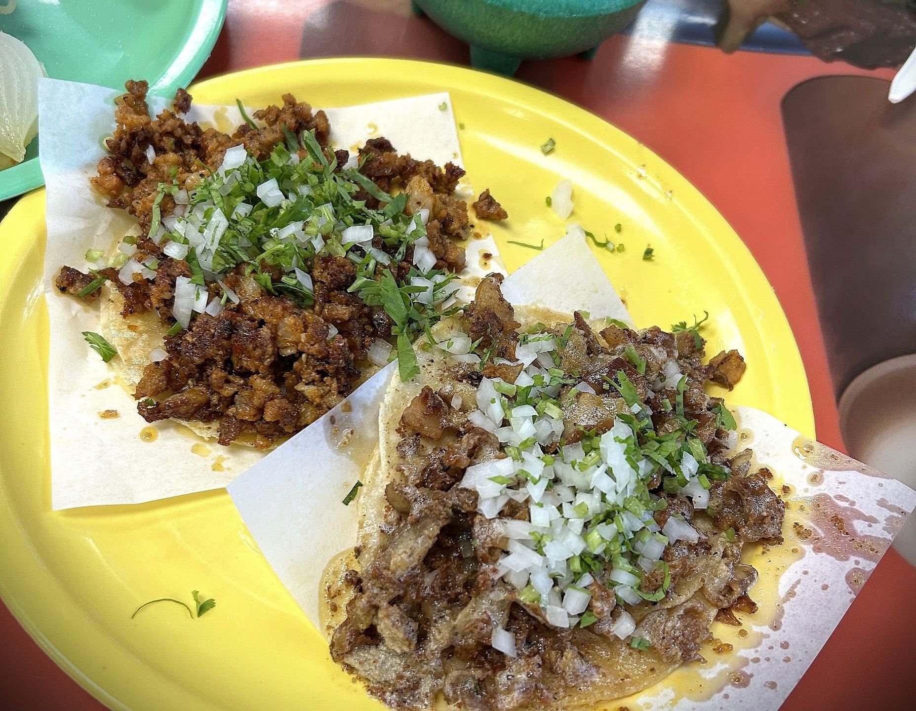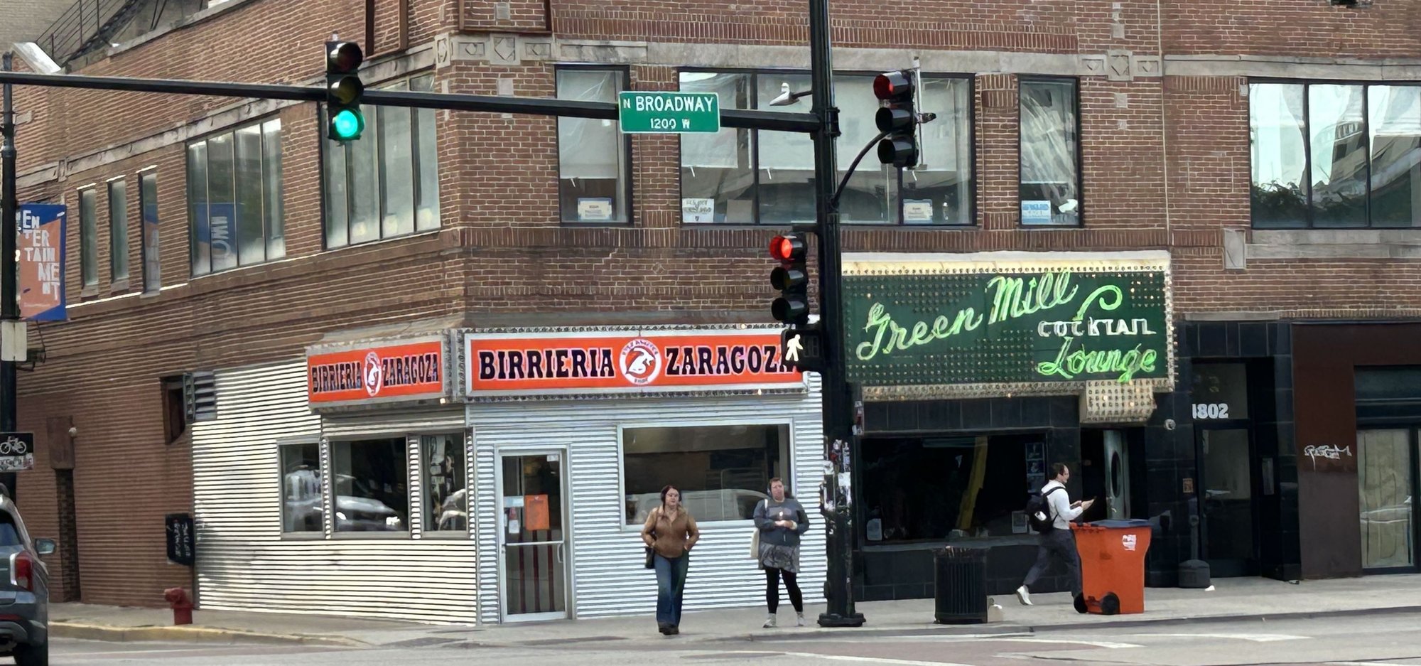 I rented a car for my trip. From Midway Airport, I made a beeline for La Chaparrita in Little Village for their tacos de tripa and longaniza. I also got an alfalfa auga fresca to drink.
