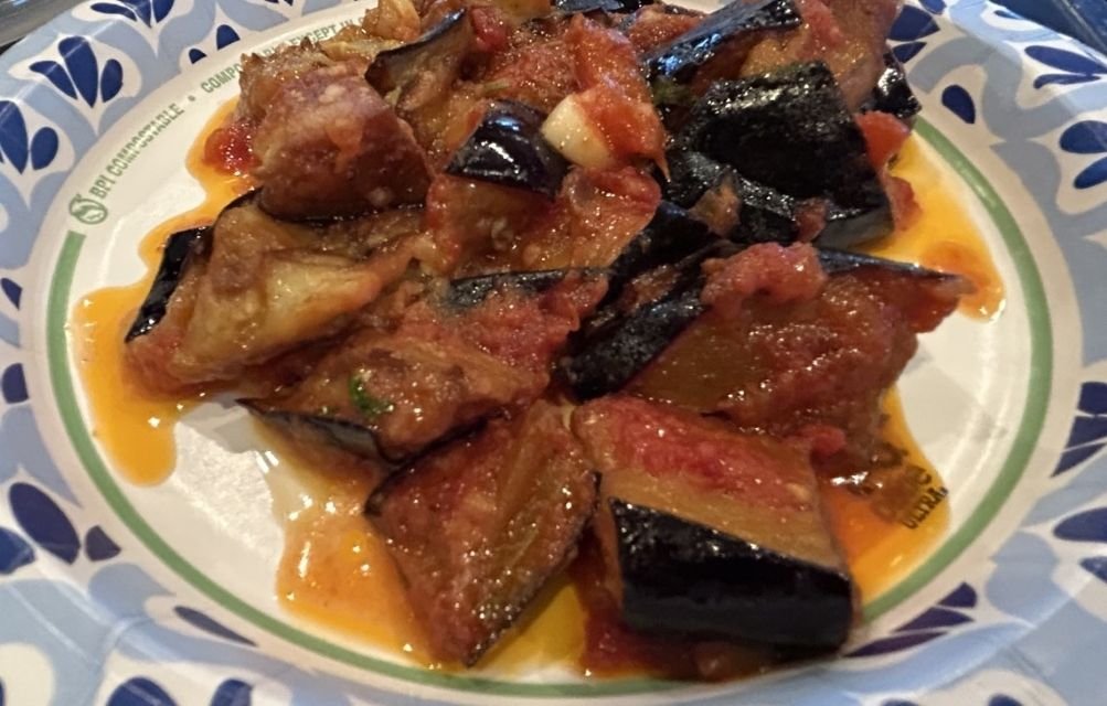 Pictured are the timballo di pasta and eggplant funghetto, specialties I've never even heard of before.