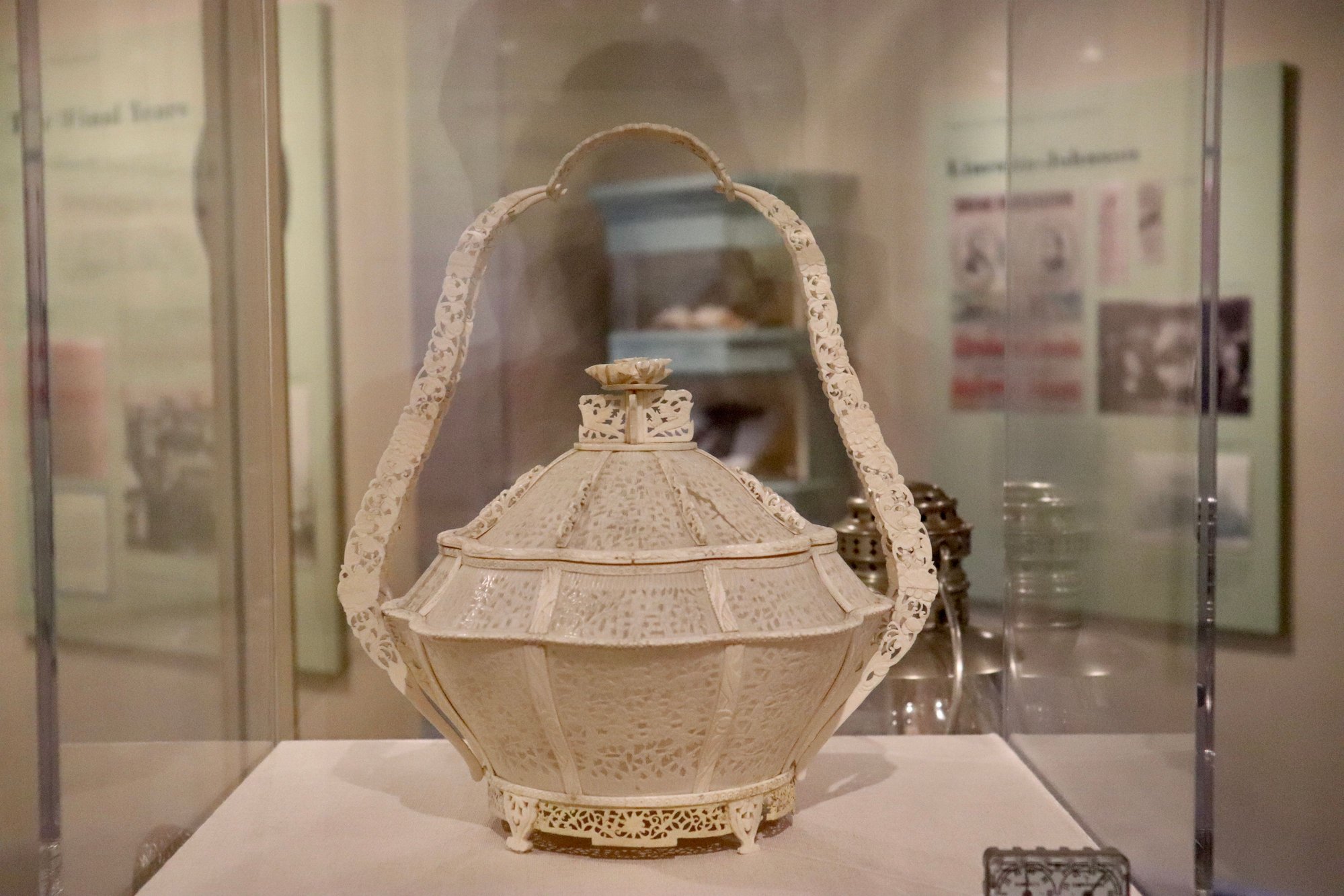 Johnson was the first president to host a visit by a Queen in the White House, Queen Emma Kalanikaumakaʻamano Kaleleonālani Naʻea Rooke of Sandwich Island, now Hawai'i. (Try saying that name three times in rapid succession.) She brought a lovely ivory basket as a gift.