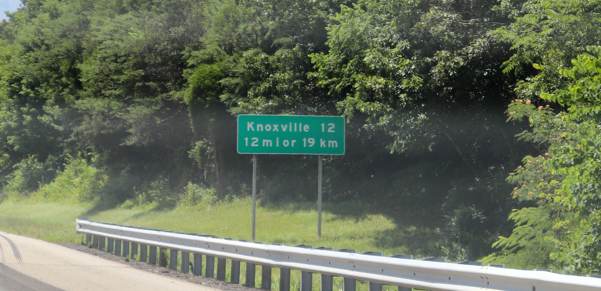 In contemporary history, a hangover from the 20th century attempt to convert highway signs from Imperial to Metric units. That never caught on, and TDOT never saw fit to remove the signs. Given that the settings in my wagon are Metric, this is the only sign I understand.