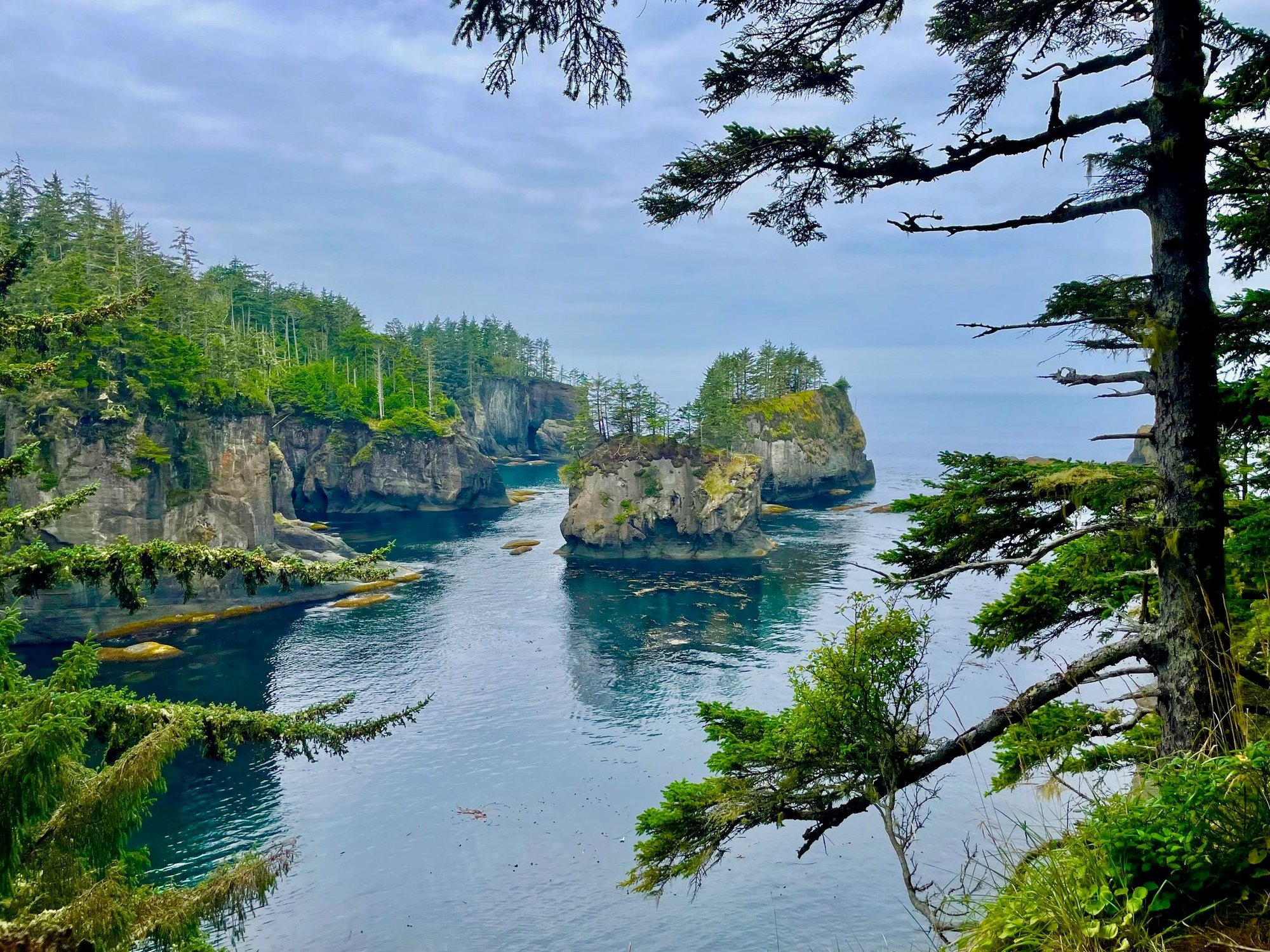 Our trip to Cape Flattery came about due to a booking error on my part. I had put in the wrong dates for our Discovery Bay stay and extended it by one day on the calendar. This came to my attention about the same time my wife said, "We have to visit Cape Flattery!". Our good luck, because Cape Flattery is fantastic. Up and on the road pretty early for us, about 10AM and back up Hwy 113 where it runs into Hwy 112 toward Neah Bay. The sign for Neah Bay says something like 27 miles. Great, we will be there in half an hour. Wrong! It's such a twisty, bumpy road that is not safe to drink coffee on the way, if you want the coffee in your mouth and not on your shirt. On top of that, they are doing a lot of construction. At least 3 stops for one lane roads, waiting for oncoming traffic. We get there in about an hour. Pass through the check point, Cape Flattery is on the Makah Reservation and they charge $20 to go on the reservation property. About another 4 miles and we are there. Good parking, we are early enough and we hit the trail! https://cimg0.ibsrv.net/gimg/www.fod...4cd8c8d74.jpeg The trail is about 1.5 miles round trip. Some elevation at the end because you go downhill at the beginning. https://cimg1.ibsrv.net/gimg/www.fod...400adc6fa.jpeg A number of board walks on the trail. https://cimg3.ibsrv.net/gimg/www.fod...ffd4c3c7c.jpeg Interesting Siamese Twin trees on the path https://cimg9.ibsrv.net/gimg/www.fod...a8709c5b2.jpeg https://cimg2.ibsrv.net/gimg/www.fod...9d8d12e87.jpeg There are about 4 viewing places on the path. This one is the prow of a ship viewing spot. https://cimg6.ibsrv.net/gimg/www.fod...c98cea468.jpeg Turn around from the prow and this is what you see! We met two young ladies from Michigan, my home state, and we talked about the Upper Peninsula in Michigan. [img alt="Cool cave. "]https://cimg5.ibsrv.net/gimg/www.fodors.com-vbulletin/2000x1504/img_5405_8dd0f740e7d20d6e25930662bff77bff56a720bb. jpeg[/img] Cool cave. https://cimg8.ibsrv.net/gimg/www.fod...c26dac84c.jpeg There was an otter in this bay and it was on it's back most of time and it was being chased by seagulls trying to pick up and oysters or clams the otter dropped. https://cimg0.ibsrv.net/gimg/www.fod...516baddb0.jpeg The end of the trail looks out on all of these rock formations. Really beautiful, plus we had good weather, not sunny but no rain. https://cimg1.ibsrv.net/gimg/www.fod...c765599a4.jpeg Another shot of the Cape |