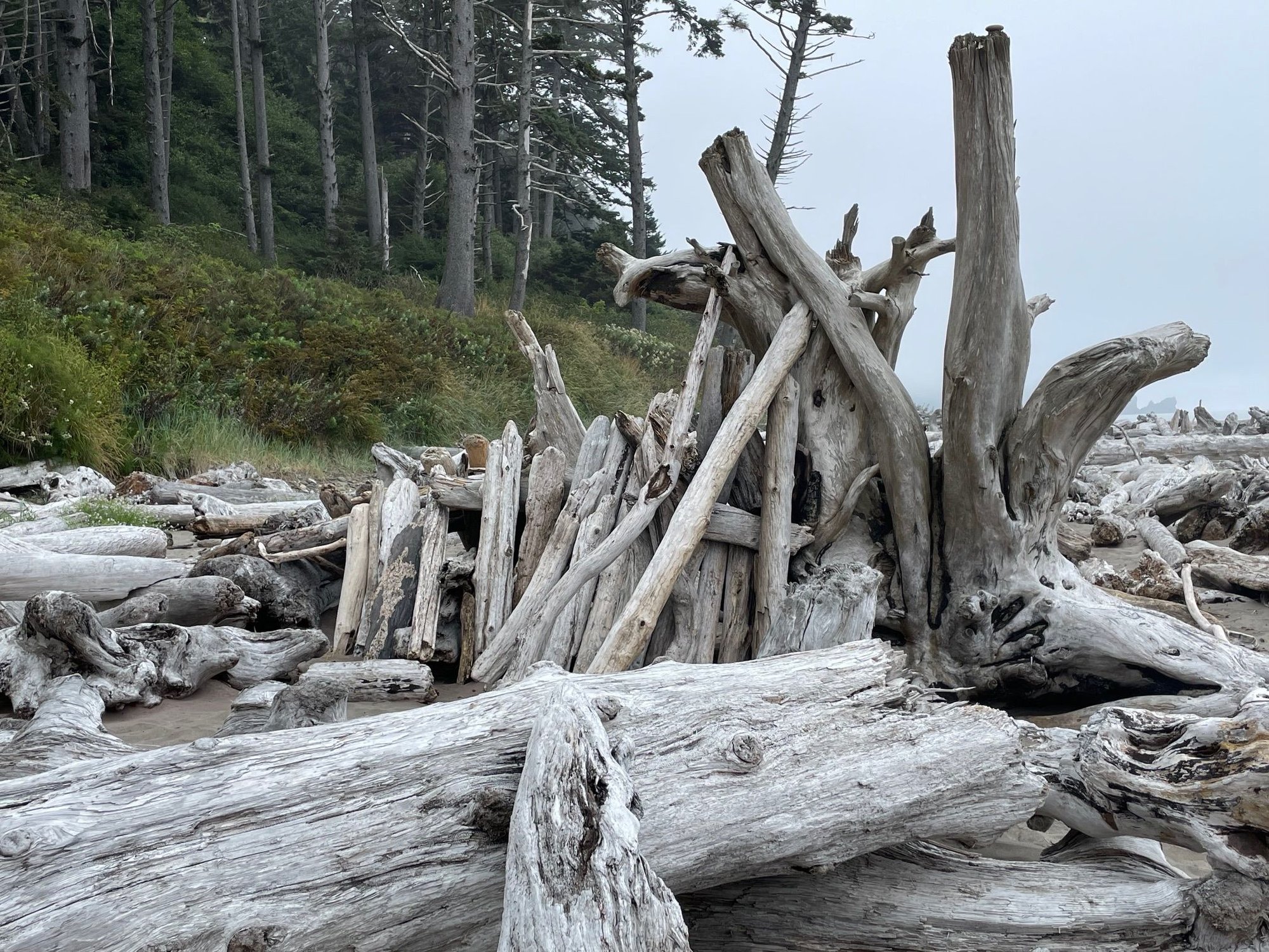 On one of our outings in the Park a woman told us, you have to go to Second Beach. Mora Campground is on the north side of the Quillayete River and the community of La Push is on the south side. From the Mora side it is about 20 minutes to get to La Push. There are three beaches here, 1st Beach which is actually in the town of La Push on the Quillayute Reservation and 2nd and 3rd beaches further south. Second Beach has a small parking lot and a well maintained path that leads to the beach. We loved it. https://cimg7.ibsrv.net/gimg/www.fod...5eed0a22b.jpeg This way, follow me! https://cimg9.ibsrv.net/gimg/www.fod...c79d5bff6.jpeg Interesting tree along the way. The path is really step at the end and involves some muddy steps https://cimg3.ibsrv.net/gimg/www.fod...2488848af.jpeg On our way back up, we appreciated these wooden crossings. https://cimg6.ibsrv.net/gimg/www.fod...a580aed45.jpeg This tree was the sign that we were starting to go down to the parking lot after a bit of climbing from the beach. https://cimg0.ibsrv.net/gimg/www.fod...b70fa81bf.jpeg Almost there, view from one of the turns on the path https://cimg0.ibsrv.net/gimg/www.fod...0247f4f56.jpeg The most amazing driftwood https://cimg9.ibsrv.net/gimg/www.fod...4247cc3c9.jpeg Here is a close up of some log that caught my attention https://cimg1.ibsrv.net/gimg/www.fod...93ac1dbe6.jpeg There is also a Hole-in-the-Wall here but I'm not sure you can get to it like the one on Rialto beach. https://cimg5.ibsrv.net/gimg/www.fod...ed4d06102.jpeg This giant buoy escaped the sea and is now resting on the beach. https://cimg8.ibsrv.net/gimg/www.fod...54bc4697a.jpeg Offshore island or sea stacks as there are called. https://cimg1.ibsrv.net/gimg/www.fod...baef4efe7.jpeg This is a random pile of logs that have been done by humans. On our way back up the hill we passed about 10 people who had permits to actually camp on the beach. Too much gear for us to schlep to the beach! |