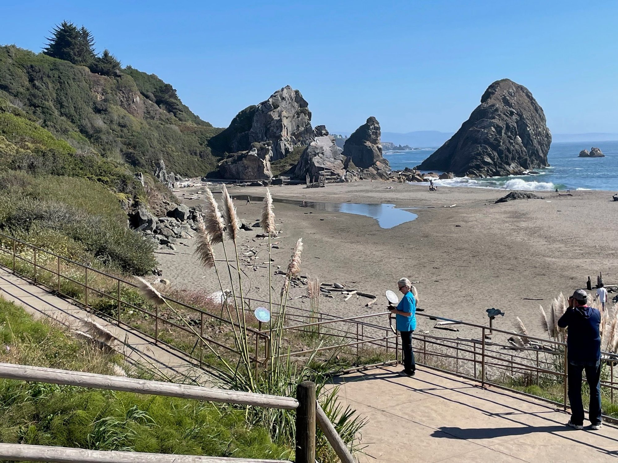 We will only be in Oregon for three days and I'm afraid we are giving it short shrift compared to Washington. But, at some point we have to get home, I don't know why, we have completely lost track of our days. I mean what is the date, what day of the week is it? We basically have four types of days, washing laundry day, grocery day, shower day and traveling day. It is really is a bit of heaven to not be aware of anything other than our own existence. Of course we have been in our timeshares with all the modern conveniences like a telephone and TV, but it really drives the point home, there is nothing on TV! We end up watching too much Bobby Flay and the other cooking channels, I mean how many Housewife TV shows can you make? Anyways, I digress, we are headed to the next stop which will be California. While walking the boardwalk in Florence, we met a woman who told us that you have to stop in Old Town Bandon which we do and it is a nice stop. We went to a bakery to buy a few cookies for the trip, well, we have a special "today" buy six cookies get one for free. ( How many of you think the special is everyday) After paying our $14 bill for 9 cookies we hit the road. A couple of years ago we camped at Harris Beach State Park in Brookings. The campsite is OK, very manicured with the feel of an RV Park but the day use area is spectacular. Great sea stacks, nice beach and plenty of parking and a bathroom. It's great stop for lunch, sitting in the van looking at the ocean. Then we hit our new fav Fred Meyer for gasoline and few grocery items. Next stop is Sue-Meg State Park in Trinidad, California. https://cimg9.ibsrv.net/gimg/www.fod...ac29ae7db.jpeg You can't miss Old Town in Bandon, because you almost drive straight into it off Hwy 101. https://cimg9.ibsrv.net/gimg/www.fod...928aad6f0.jpeg A little carving on the boardwalk. There is a bathroom right across from this statue which may be too much information but it's good to know! https://cimg4.ibsrv.net/gimg/www.fod...319b82f01.jpeg A little Orca ride for the kiddies. https://cimg6.ibsrv.net/gimg/www.fod...7bb81c403.jpeg After procuring our cookies, we drive out to the Bandon South Jetty Park which has a very nice overlook of the Coquille River and the lighthouse across the river entrance from the ocean https://cimg5.ibsrv.net/gimg/www.fod...24a98a047.jpeg Another picture of the jetty https://cimg6.ibsrv.net/gimg/www.fod...58cd24af9.jpeg Day use at Harris Beach State Park. https://cimg3.ibsrv.net/gimg/www.fod...dea7f9d6e.jpeg Some more sea stacks. https://cimg4.ibsrv.net/gimg/www.fod...da6f0683c.jpeg Beach area around the north side of the parking lot. |