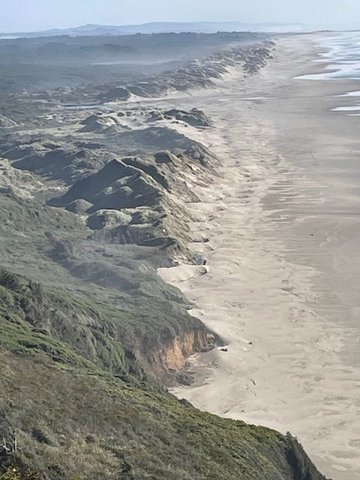 We very sadly said goodbye to Washington State, crossing the big bridge at Astoria. In some ways the Oregon Coast is similiar to Washington, but yet it has it's differences, less drift wood, longer beaches, easier to get to the beach, still has sea stacks and great character. We are headed for more camping just south of Florence. I had not booked a site which backfired once we got to Tahkenitch Landing, but more about the later. Along the way we pulled over a number of times, once at Cape Perpetua, https://www.fs.usda.gov/r06/siuslaw/...visitor-center and at the Heceta Head lighthouse. Both excellent stops along Hey 101. You can actually stay in the old lighthouse. https://cimg6.ibsrv.net/gimg/www.fod...aa16d1ba3.jpeg The visitor center is about 40 minutes north of Florence. https://cimg7.ibsrv.net/gimg/www.fod...3c2af08e2.jpeg They have a number of very short videos you can watch and the usual park type displays of flora and fauna and these chairs with foot stools so you can simple sit and watch the panoramic view https://cimg1.ibsrv.net/gimg/www.fod...f149bc2df.jpeg The surf is amazing and the power that it brings in is something to watch. https://cimg4.ibsrv.net/gimg/www.fod...fc31b40ab.jpeg More great views https://cimg0.ibsrv.net/gimg/www.fod...fac06c4b8.jpeg Just before crossing this bridge, the Cape Creek Bridge, you drive down to the beach for access to the lighthouse. https://cimg5.ibsrv.net/gimg/www.fod...214c77542.jpeg Once in the parking lot, I realize that you have to walk...up hill...both ways, to get to the lighthouse! You can see the light keeper's house. So I have to decide whether or not I'm going to walk it. I walk it. https://cimg9.ibsrv.net/gimg/www.fod...504047586.jpeg This is now a B&B, which somehow, you can drive to? Not sure where that turn off was but I missed it. https://cimg2.ibsrv.net/gimg/www.fod...65521dae0.jpeg The light house, similar to the one at Cape Disappointment. https://cimg3.ibsrv.net/gimg/www.fod...f23b5259a.jpeg Looking down on the beach from the lighthouse. You can see that the Oregon Coast is rounder, taller cliffs, the forest doesn't come right down to the beach like in Washington. Maybe at some places? https://cimg8.ibsrv.net/gimg/www.fod...dce4cd9ce.jpeg As you get closer to Florence you start to see more sand dunes. This was a pull off south of the Heceta Beach |