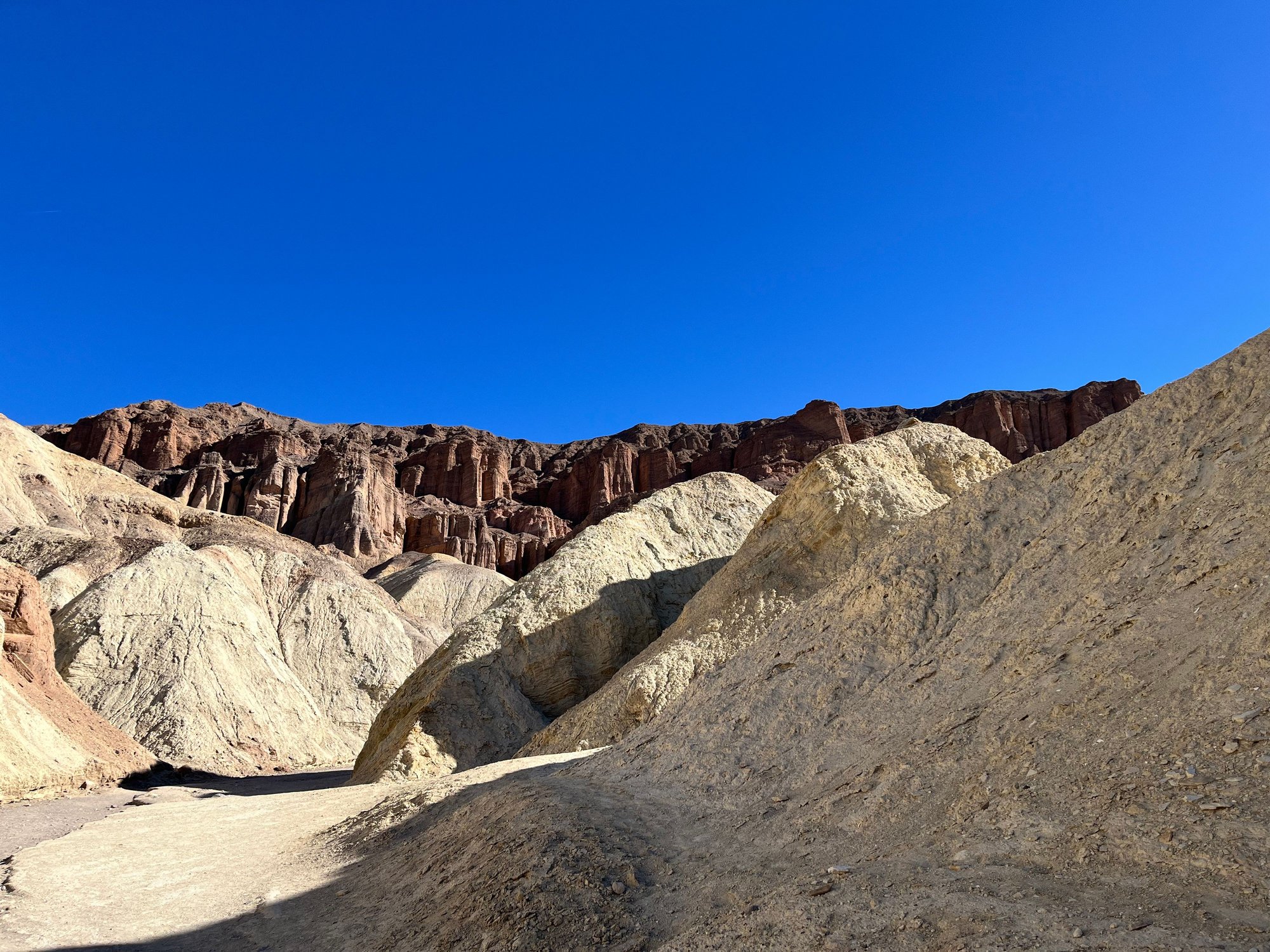 Our first hike of the day is Golden Canyon. This hike has a number of options: we knew we wanted to at least hike to Red Cathedral, but whether we retraced our steps vs continue with the Gower Gulch loop would be determined by how we feel. I filled up the Camelbak water bladder, packed some snacks, and got my hiking poles, and off we started around 9am. The first section is pretty easy, but once we veered off toward Red Cathedral, it gets steeper followed by quite a bit of rock scrambling. When we got down, we decided we would continue on the Gower Gulch loop, making it a total of a 5-mile hike, and took 3 hours.