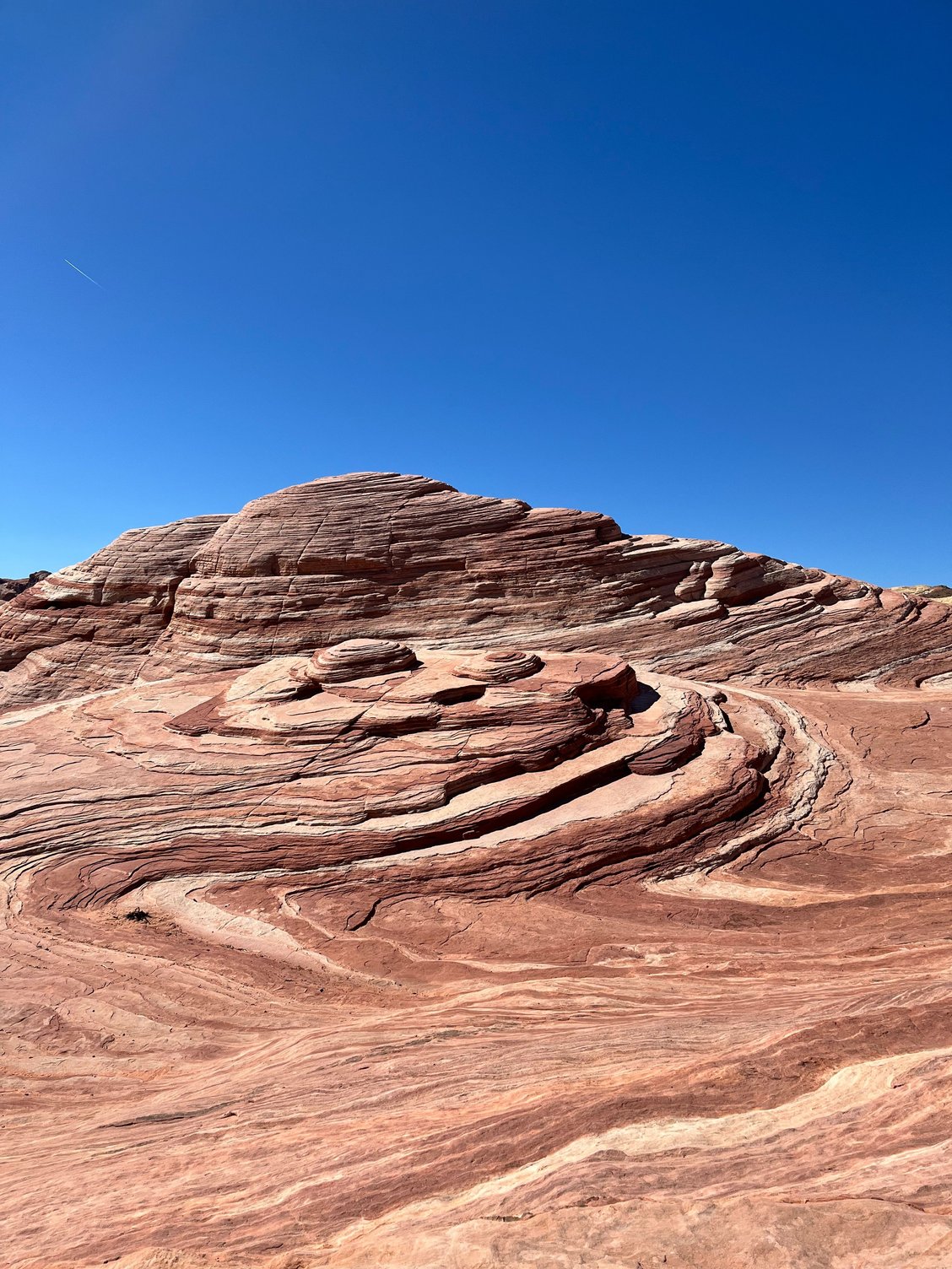Rainbow Vista trail is 2 miles out-and-back. All 3 trails are quite beautiful and we are struck by the red sandstone and the patterns of the rocks. My hiking poles came in handy on all 3 hikes as there is a lot of sand and elevation gain.