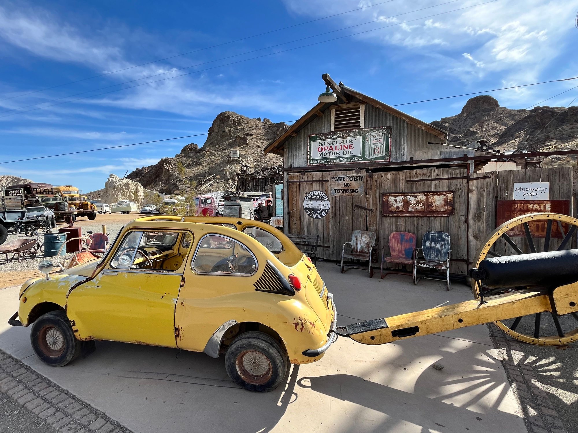 We arrived just after 1pm and I had packed sandwiches all the way from home, because I wasn't sure we would have time to stop for lunch. This worked out great as the Mine has picnic tables outside. The family that owns the mine collects a ton of "stuff" so after lunch we had time to walk around the grounds to look at all the old stuff.