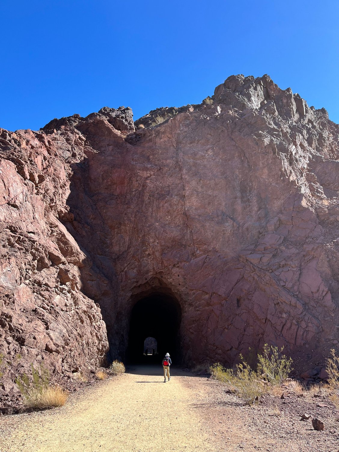 Originally I was going to book us on the Lake Mead cruise (on a paddle steamer). The timing isn't the best (12-1:30pm) and it's quite pricey ($42pp age 12 and up). By the time I decided to book, it was full. So instead we spent the morning at the Lake Mead visitors center (part of NPS). My son picked up a junior ranger book, and I asked about the Historic Railroad trail which I had seen online. The VC has some exhibits and also an 8-min video about the Historic Railroad trail, well-worth watching before setting off on the hike. The trailhead is near the visitors center and is 5 miles out-and-back if you want to hike through all 5 tunnels. It was the actual railroad track for building the Hoover dam and the tunnels are enormous so the huge equipment could fit through. It's an easy hike, mostly flat, with nice views of the Lake, and the tunnels are pretty cool. You can continue to hike to Hoover Dam (2 more miles) but we turned back at the 5th tunnel. My son finished his junior ranger activity and received the badge.We then returned to the hotel to check out and enjoyed a leisurely lunch at Hangar 502, located right in center the historic district. I had a beet salad with chicken, my son had tomato soup and grilled cheese. Lunch was $30. Despite being in Boulder City for 3 days, today is our first time seeing the historic center in daylight and it's pretty cute.