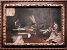 There's a desk to your right of the bed. It has two outlets. You might need a strip if your charging plugs are large