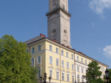 This is the Town Hall in Lviv Ukraine.  I climbed to the very top deck.