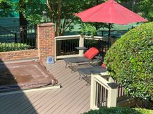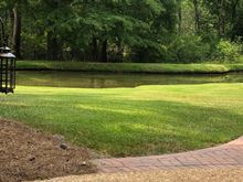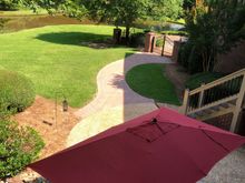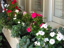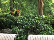 Looking out our front door, gardenias all around circle with forsythia behind.