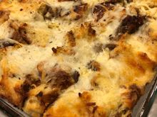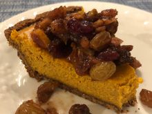 Very tart and delicious, the fruit has very little sugar but has boiled cider and lemon or orange zest added. The topping is 1 cup packed brown sugar, one cup oats, 3/4 cup flour., 1 stick of unsalted butter melted, and a half cup of chopped pecans.  The topping is as sweet as the filling is, tangy.