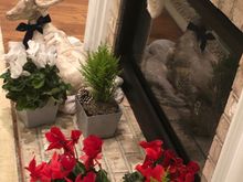 The Easter version on a bunny toile cake platter with a chick and egg on top.