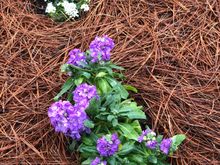 Purple and white (below) stock and white candytuft planted in front of the bushes along front walkway. They smell heavenly!